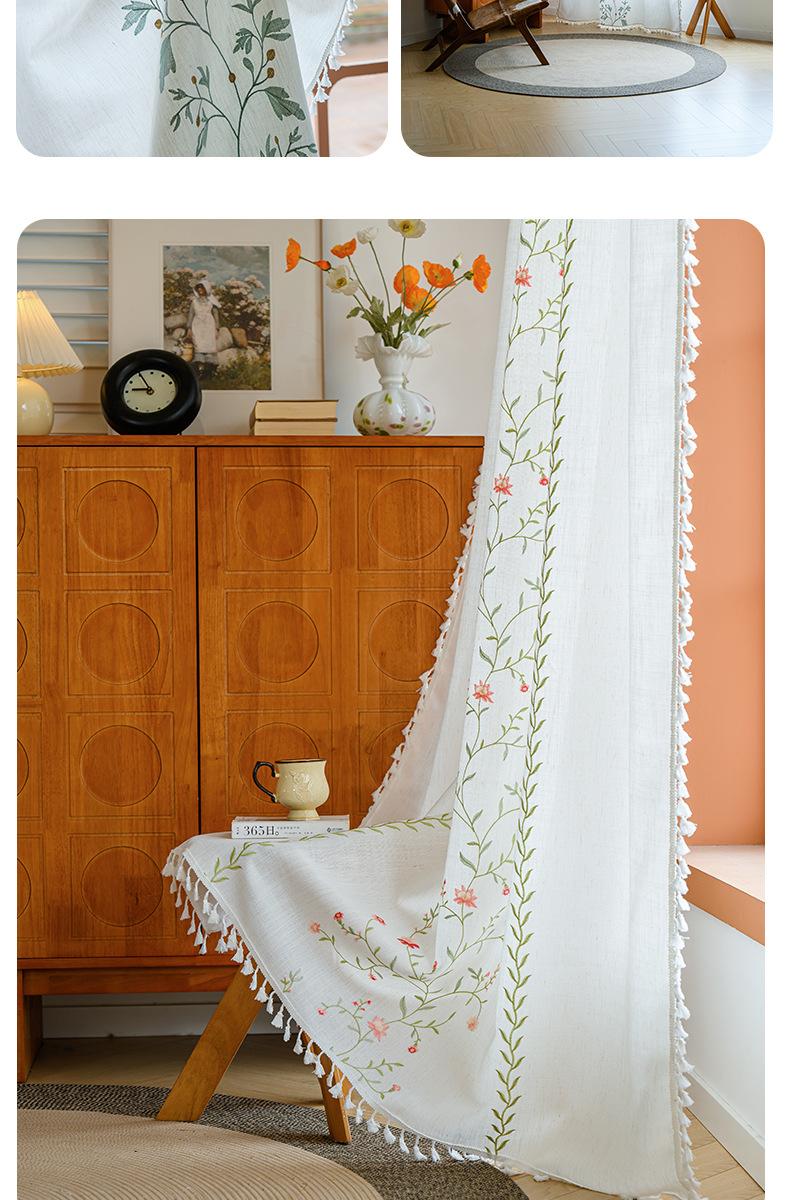 Cortinas Bordadas Populares da Amazon, Pequenas Cortinas Decorativas de Algodão e Linho Frescas Semi-Sombreadas para Cozinha, Quarto, Varanda, Divisória Brancas