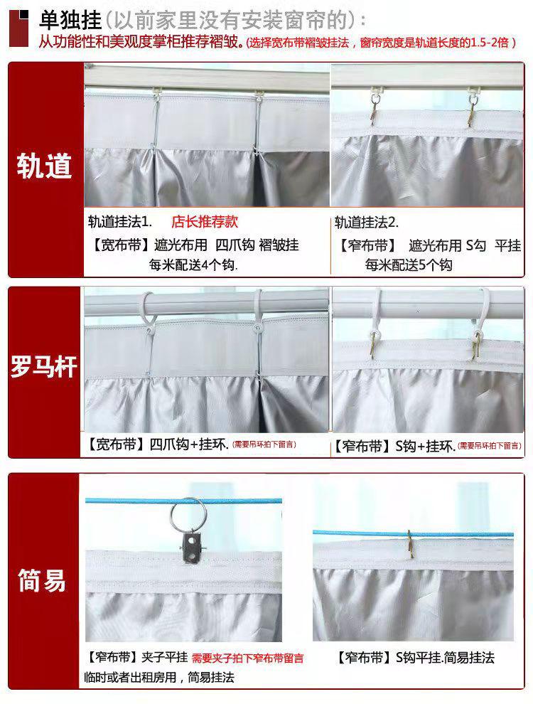 Cortinas Blackout Completas Produtos Acabados Atacado Fábrica Casa de Aluguel Varanda Quarto Proteção Solar e Isolamento Térmico Gancho Tecido Sombreador Prateado Dupla Face