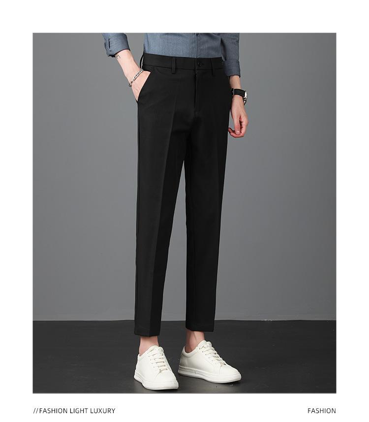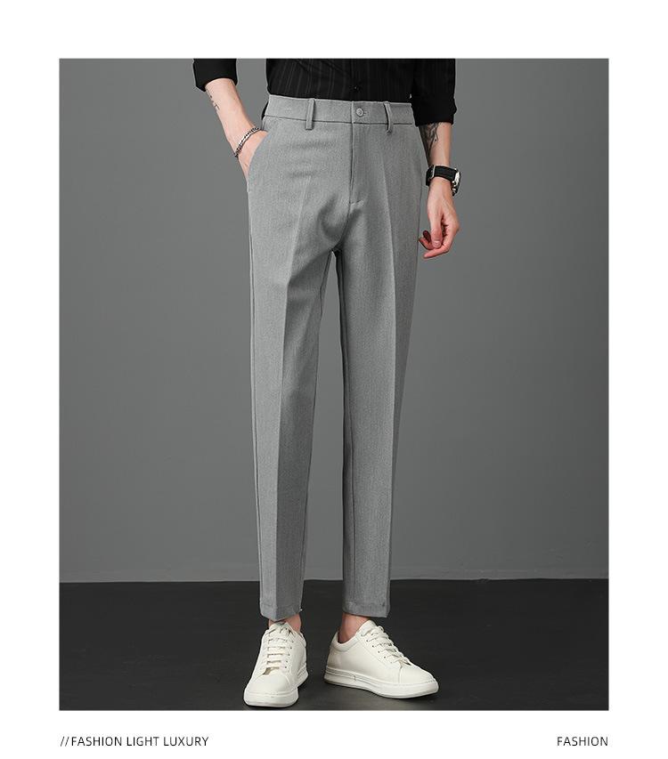 Compre Calças de Terno Pequeno Masculino Outono 2025 Stretch Negócios Juventude Calças Masculinas Nove Pontos no atacado no Joom.pro