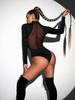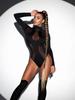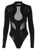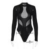 Macacão Feminino Novo Sexy Transparente com Emenda de Malha Justo na Cintura e Manga Comprida Europeu e Americano Transfronteiriço de Primavera e Verão