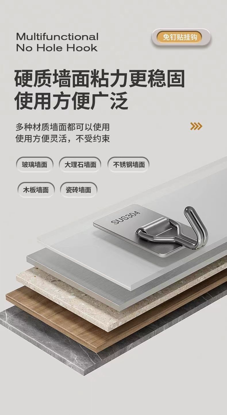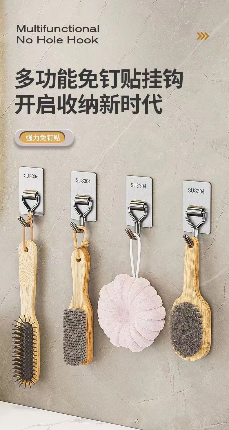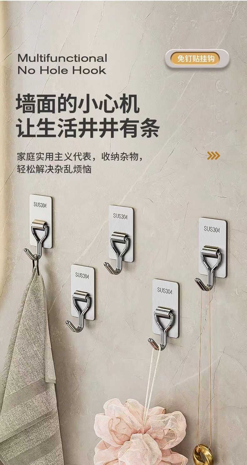 Gancho de Aço Inoxidável Forte Capacidade de Carga Viscose Sem Furos Gancho de Porta para Pendurar Roupas Sala de Estar Cozinha Dormitório Gancho de Parede