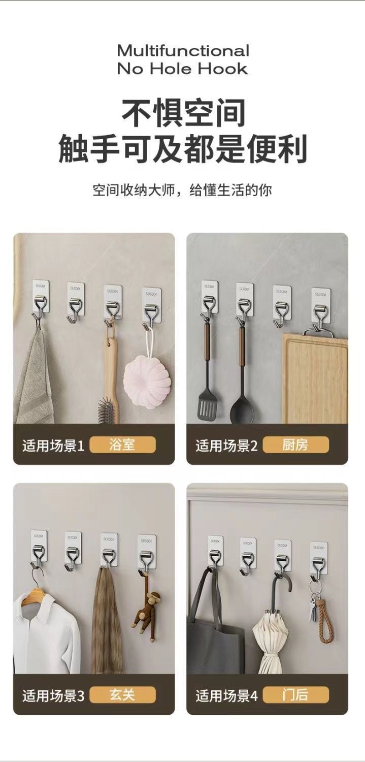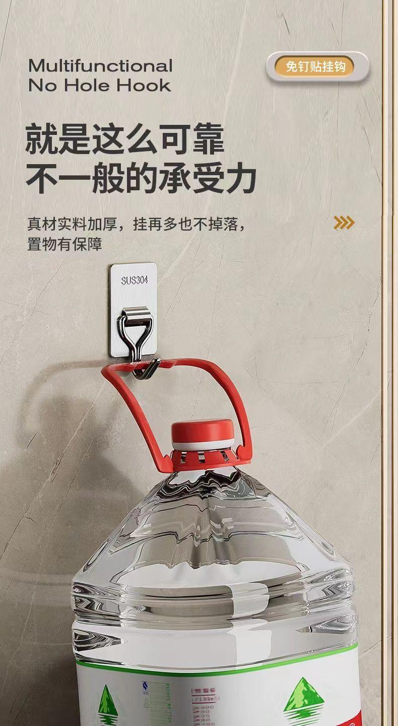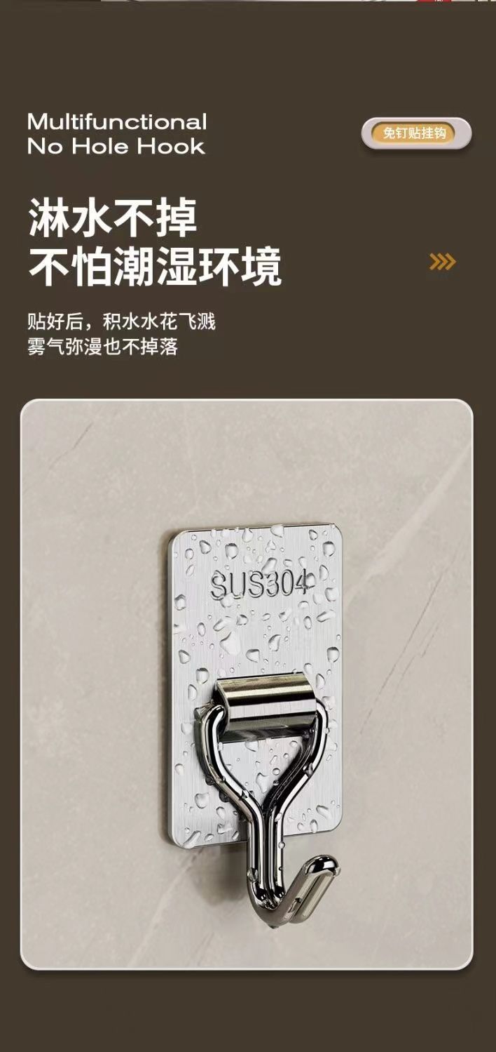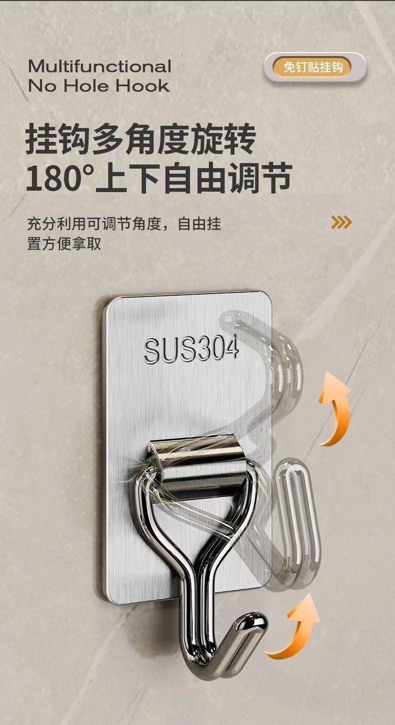 Gancho de Aço Inoxidável Forte Capacidade de Carga Viscose Sem Furos Gancho de Porta para Pendurar Roupas Sala de Estar Cozinha Dormitório Gancho de Parede