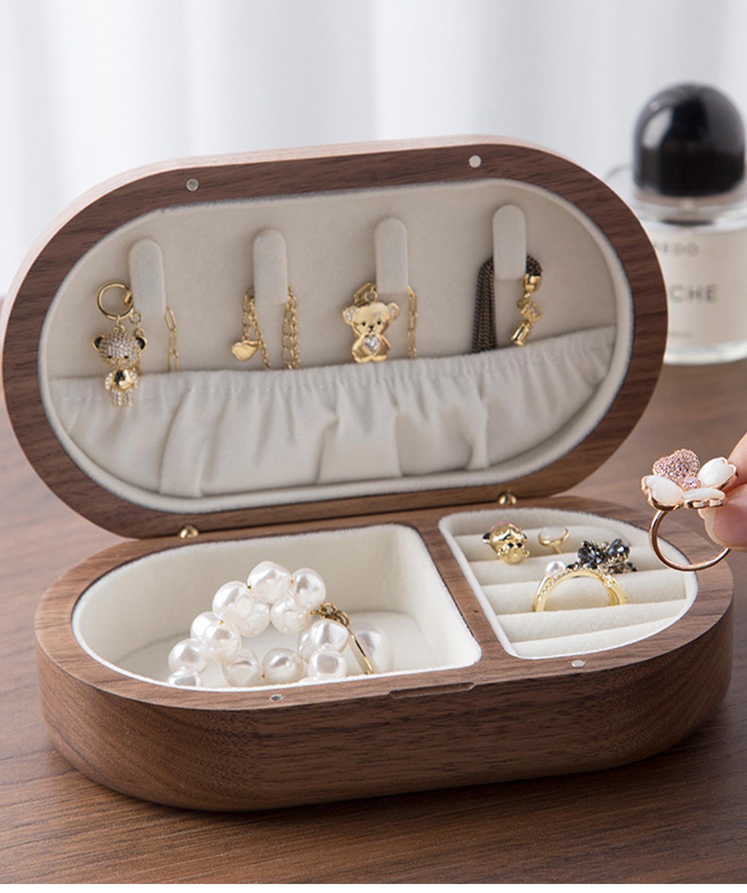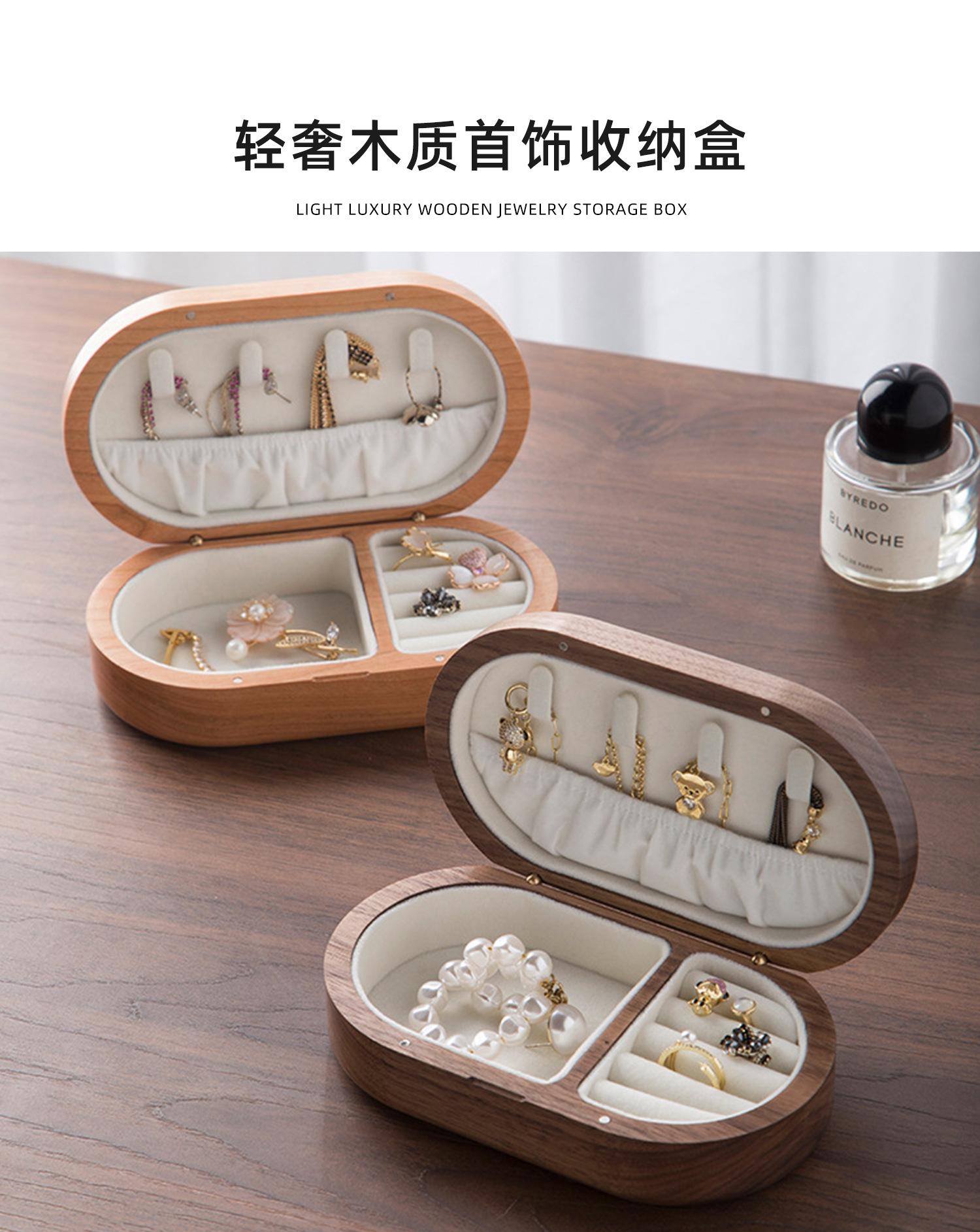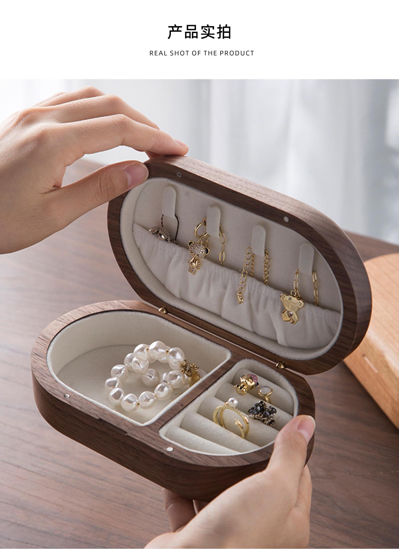 Caixa de Armazenamento de Joias de Nogueira Preta de Alto Nível Caixa de Joias de Madeira Maciça Caixa para Anéis Colares de Joias Portátil Caixa para Penteadeira