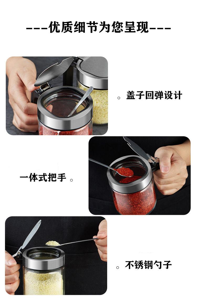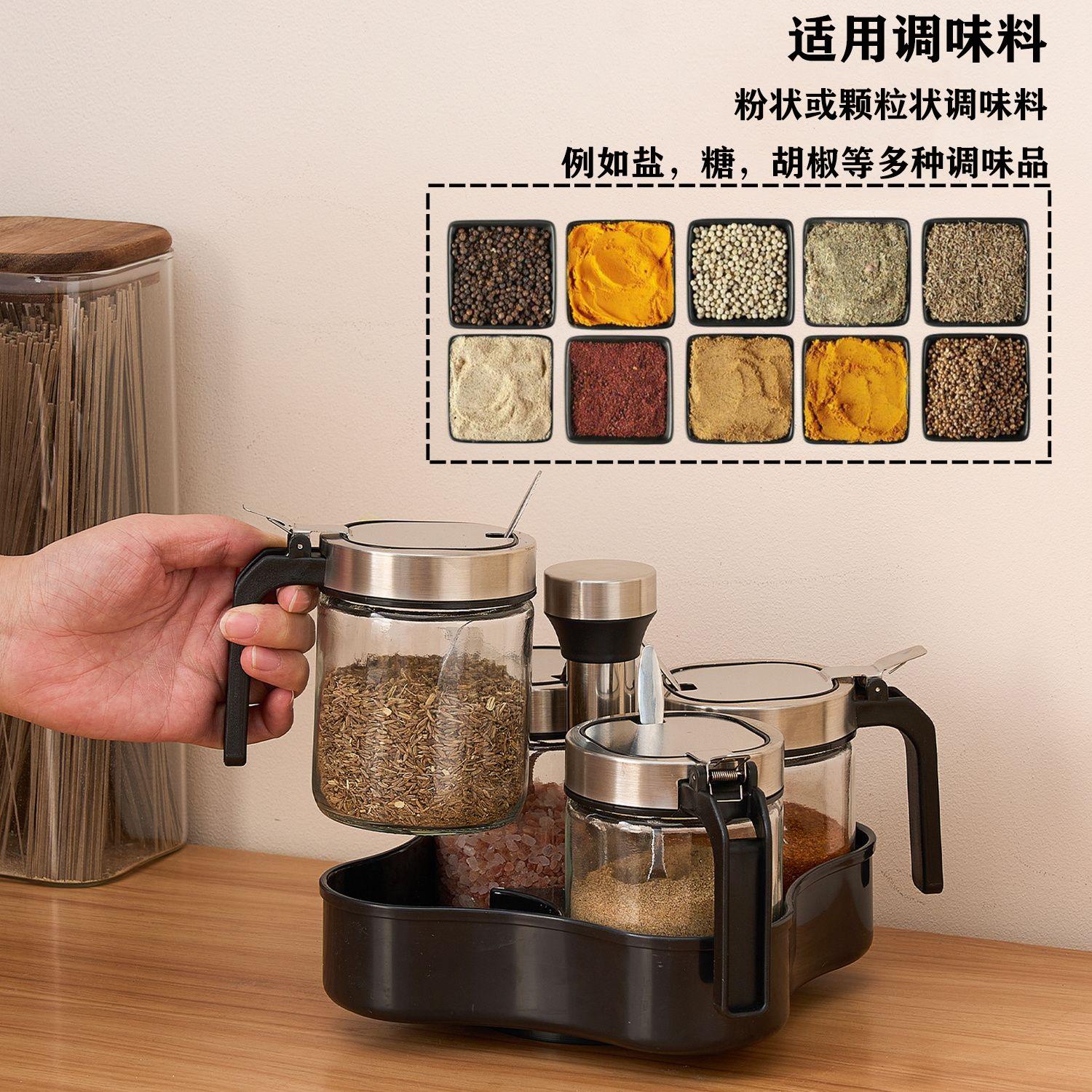 Rotating rack + 4 square lid lead-free salt shakers, 300ml thickened lead-free glass [single pack]