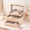 Caixa de Joias de Grande Capacidade Caixa de Joias de Veludo Caixa de Armazenamento para Anéis Colares Brincos Caixa Portátil de Alta Qualidade à Prova de Poeira