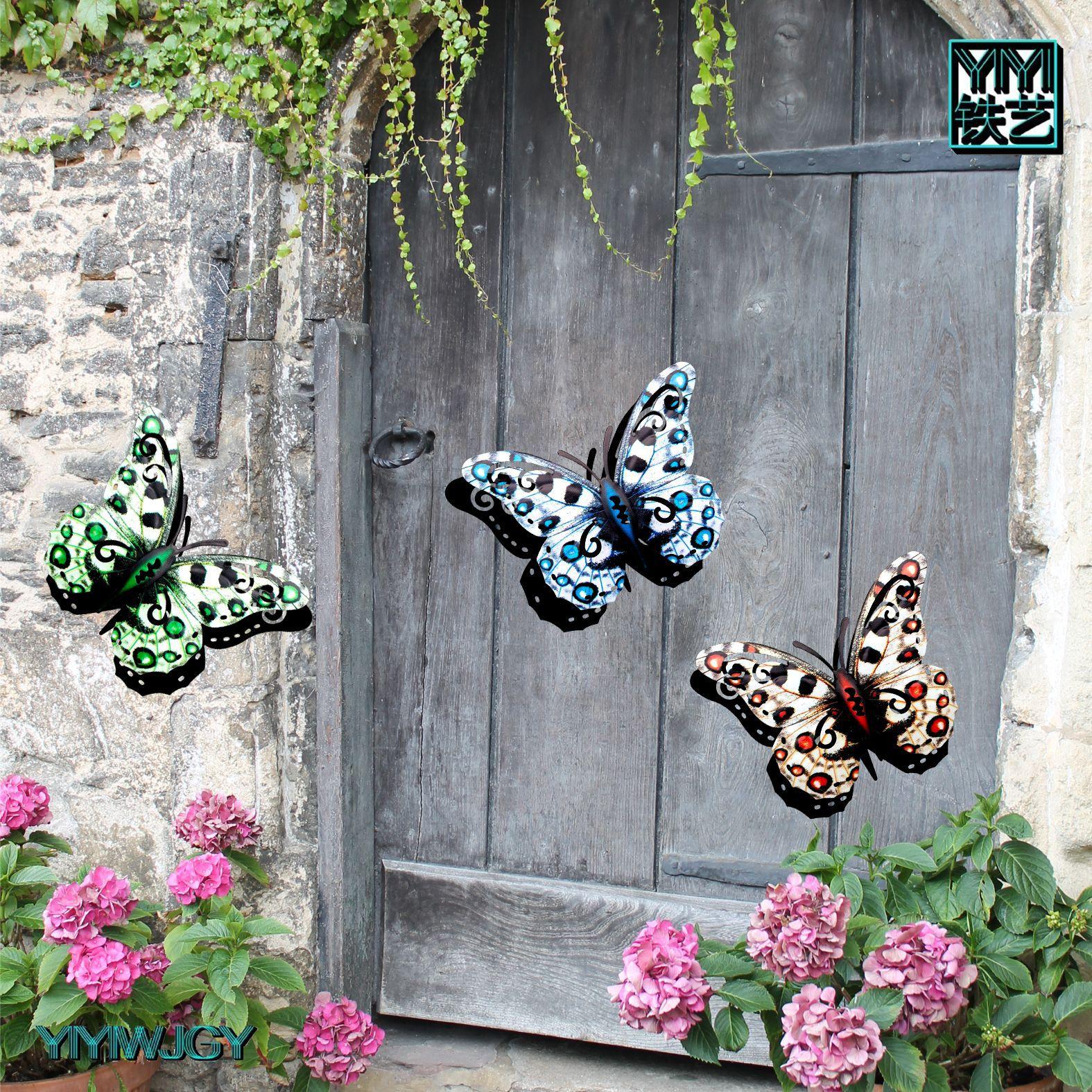 Novo fornecimento transfronteiriço Amazon ferro forjado borboleta casa pendurar parede hardware artesanato pingente decorações metal