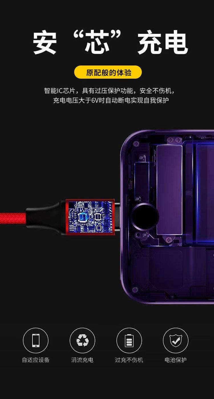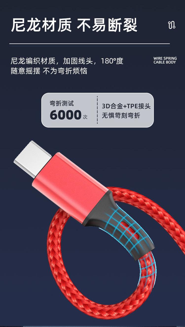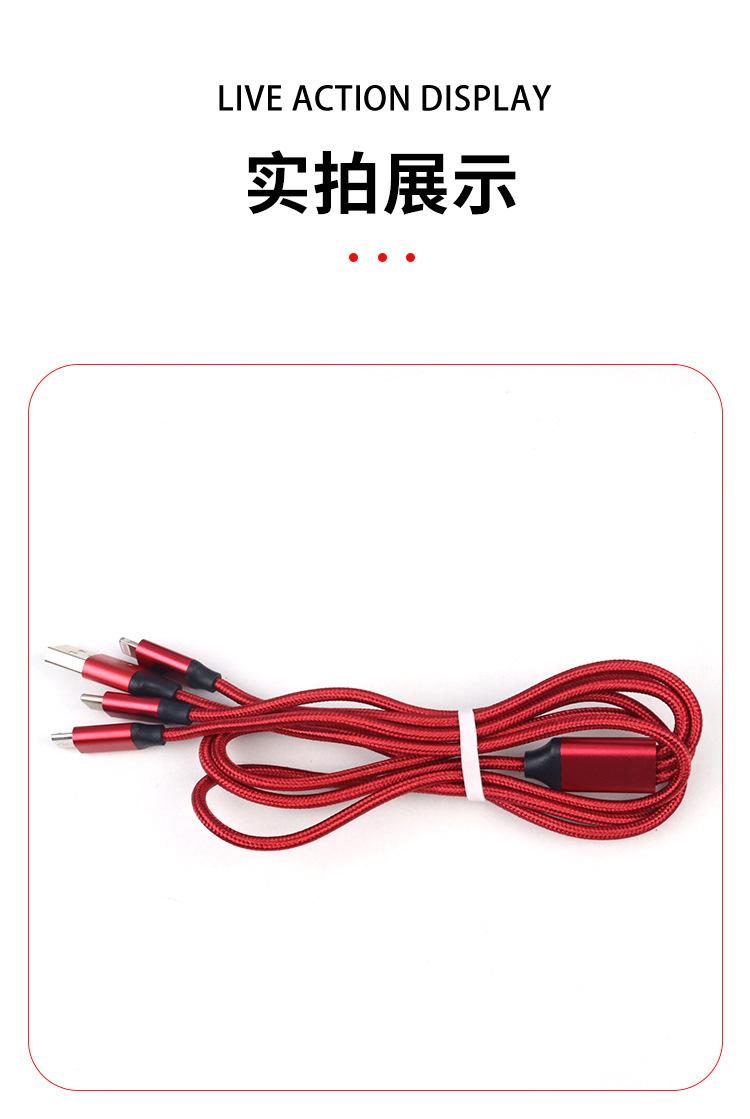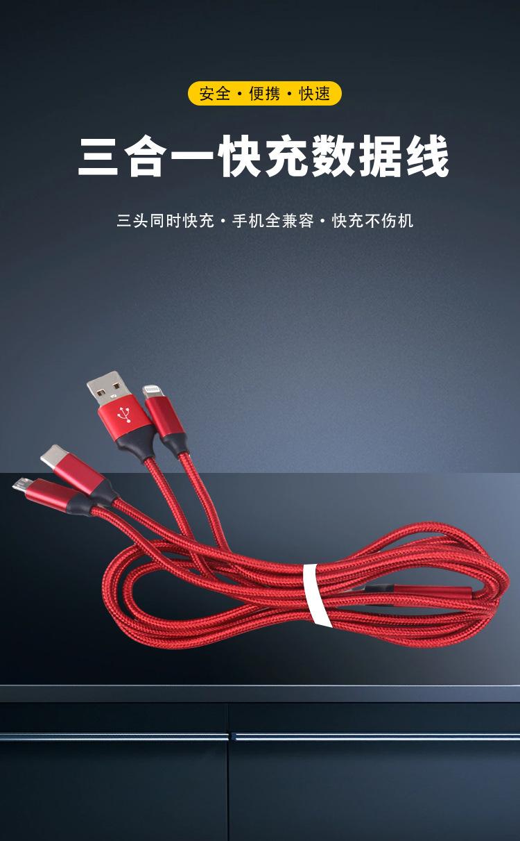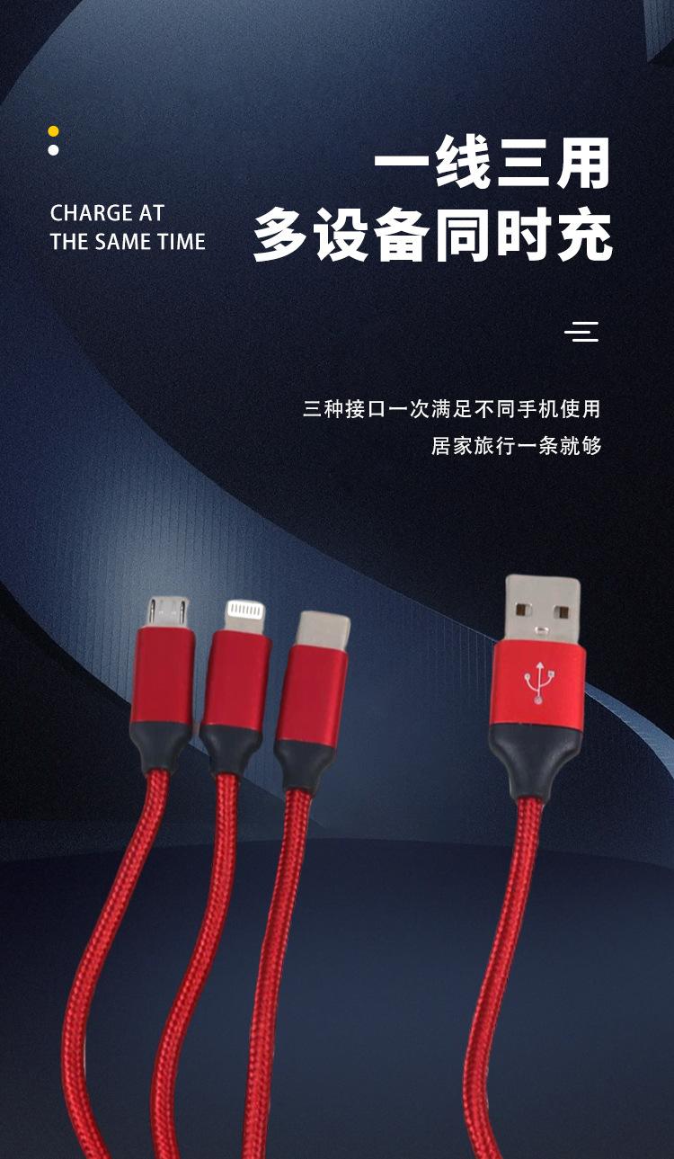 Cabo de dados um para três trançado em nylon carregamento rápido três em um cabo de carregamento para celular para Android Apple Huawei