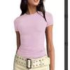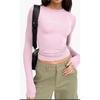 Camiseta Casual Feminina Europeia e Americana de Manga Longa 2024 Primavera Outono Sólida Slim Pulôver Camiseta Mulheres Streetwear Camiseta Básica Top