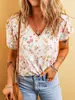 Camisa Feminina Longa de Chiffon Verão Solta Outono 2025 Nova Menina Gordinha Top Decote V Plus Size Manga Curta