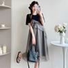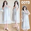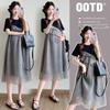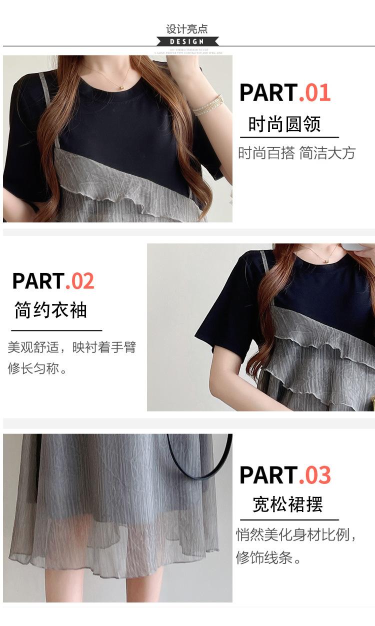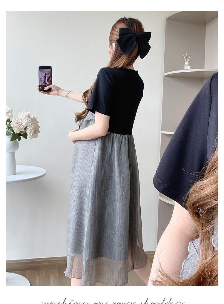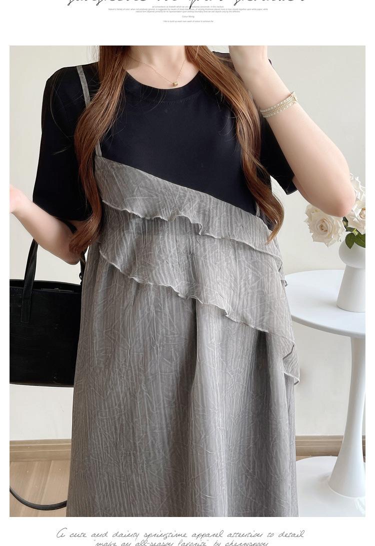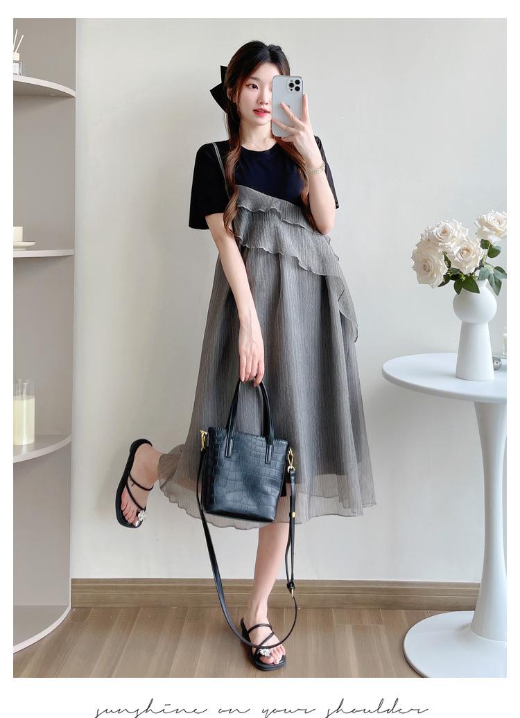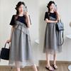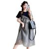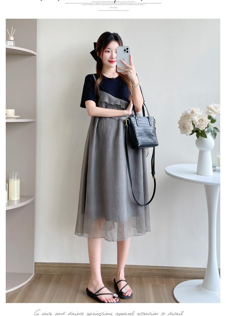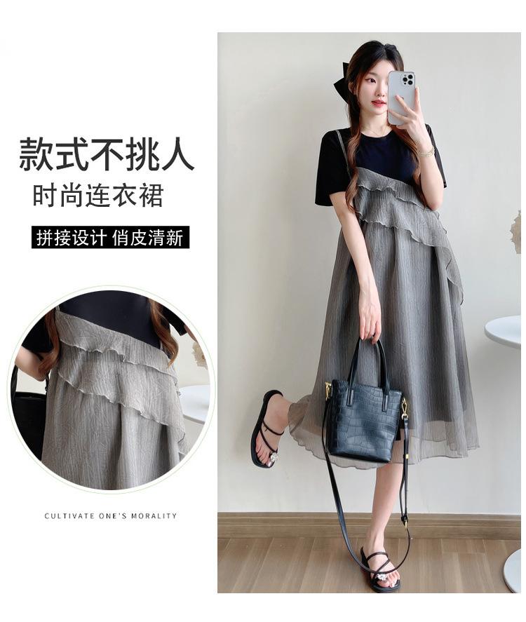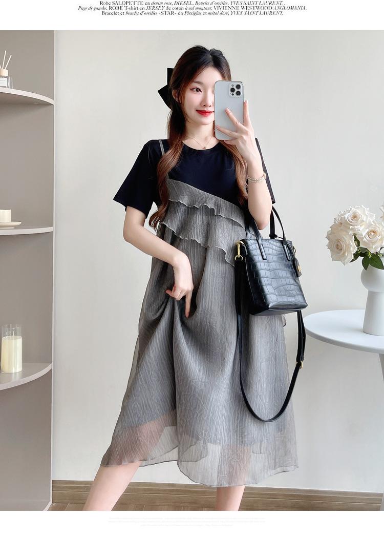 Roupa de Maternidade 2025 Verão Nova Moda Look Emagrecedor Falso Duas Peças Spliced a Versão Solta Tamanho Grande Vestido de Maternidade