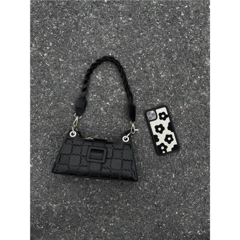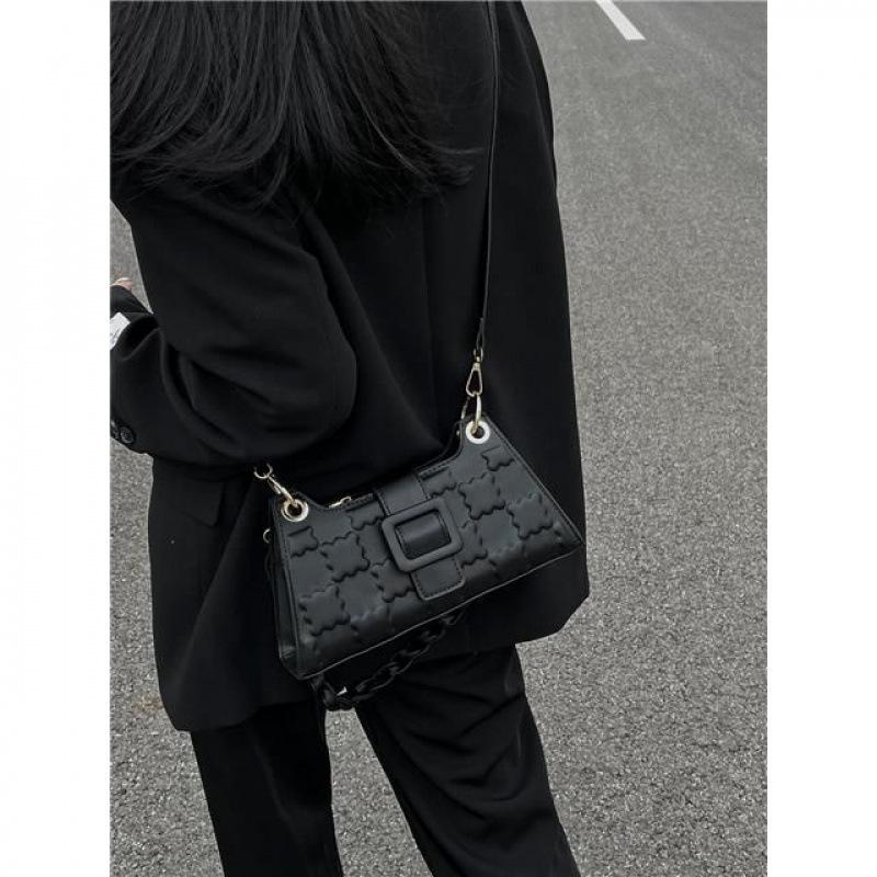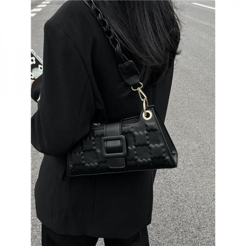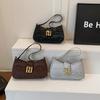2023 Nova Bolsa de Axila Quadrada Simples com Design em Relevo Outono e Inverno Bolsa Transversal para Meninas