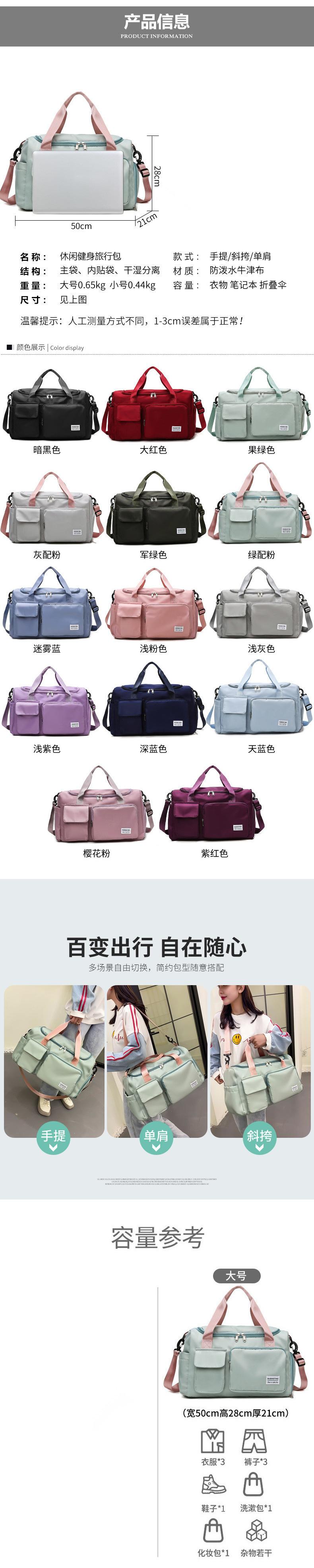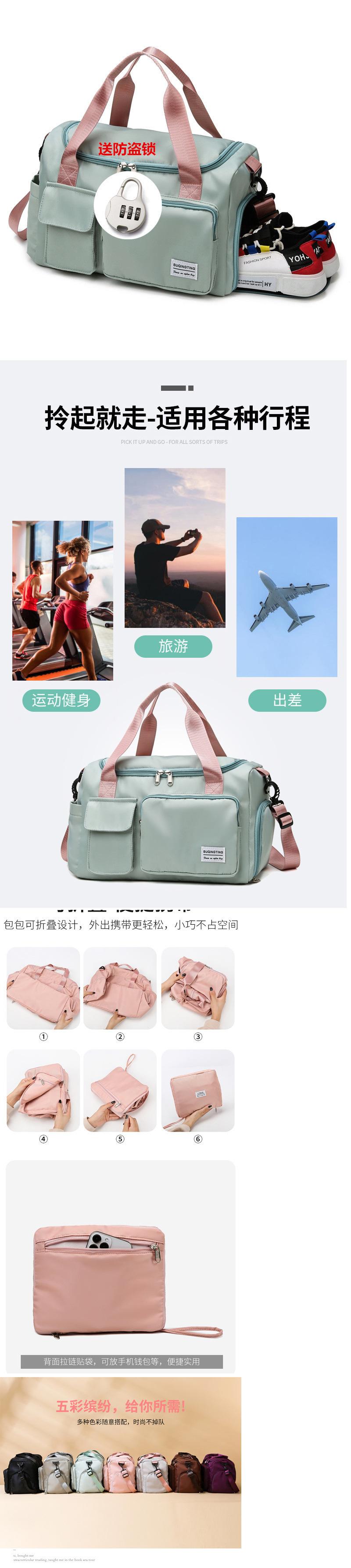 Black [large size + shoe compartment + dry and wet separation + anti-theft lock], Green with pink [large size ...