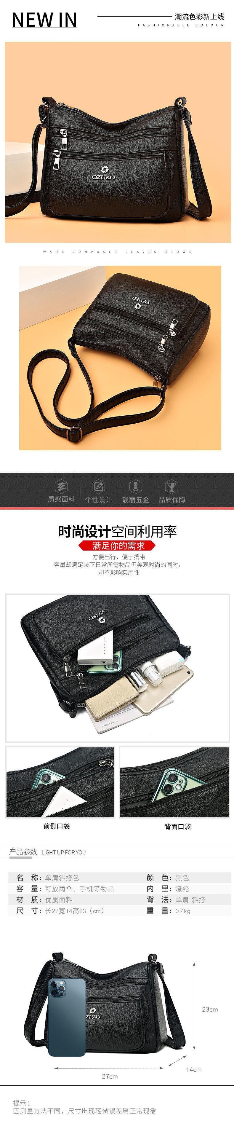 Bolsa Versátil e Elegante para Mulheres de Meia-Idade Nova 2023, Bolsa de Mãe, Bolsa Transversal de Ombro de Couro Macio Multicamadas, Bolsa de Sogra