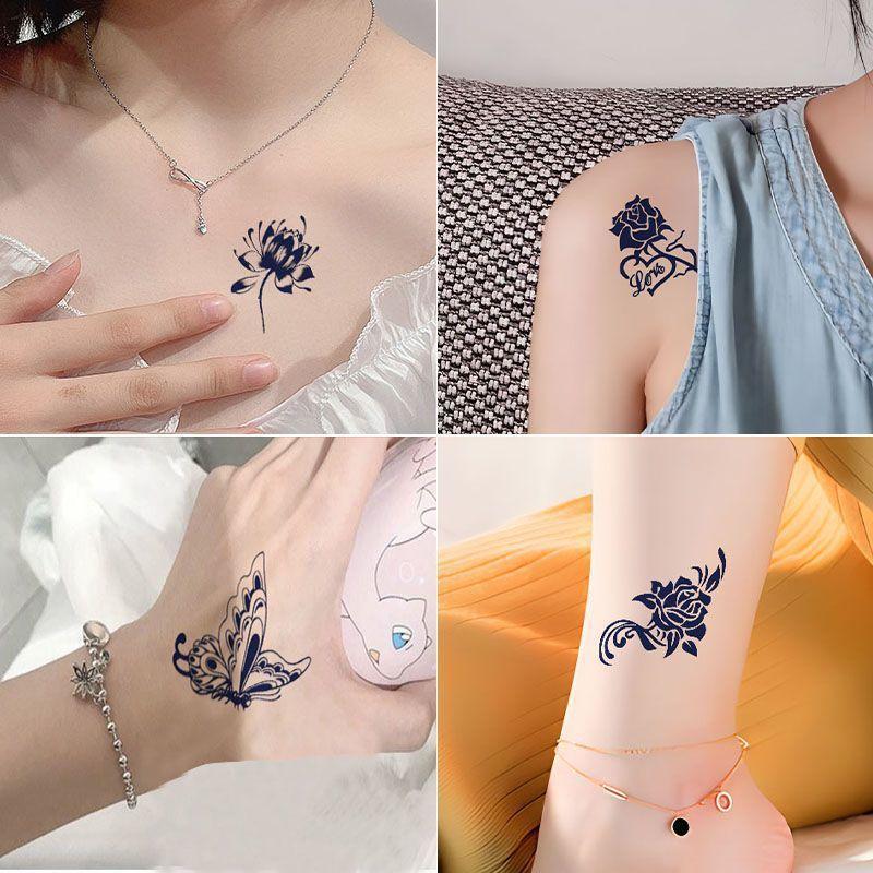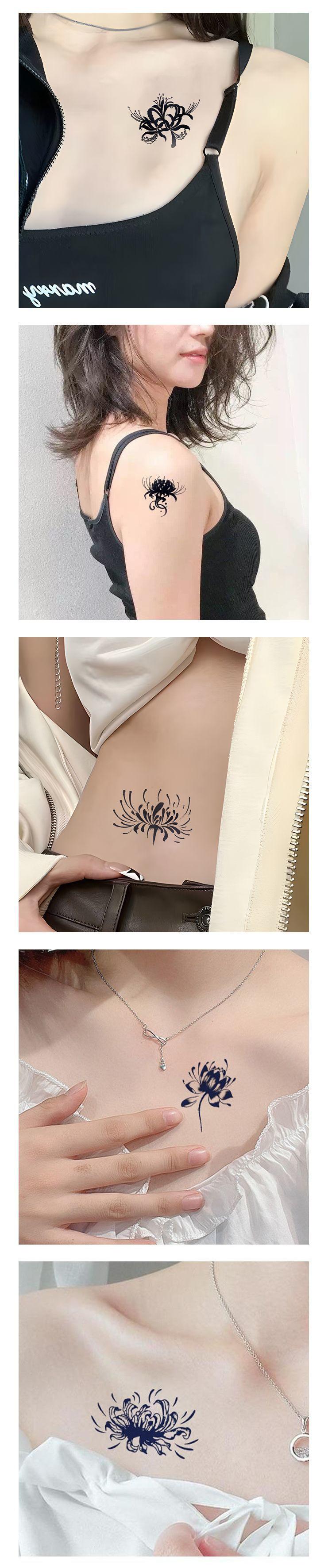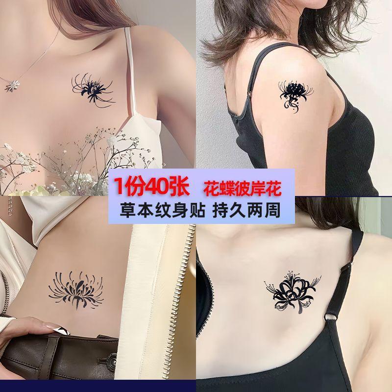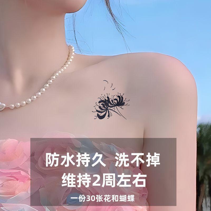 Adesivos de Tatuagem para Mulheres, Lírio Aranha, Borboleta, Flor, À Prova D'Água, Resistente a Fricção, Clavícula, Longa Duração, Lavável, Adesivos de Tatuagem Não Permanentes