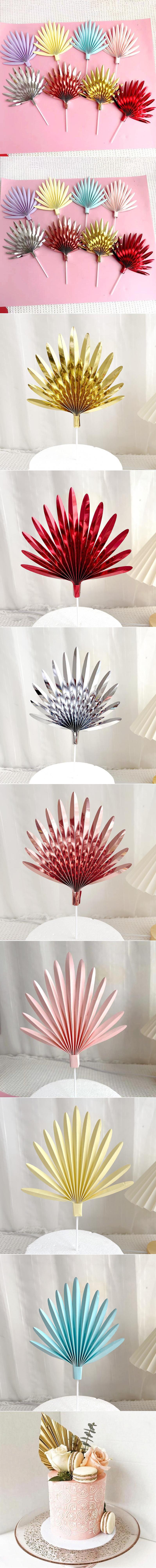 Topper de Bolo de Aniversário em Forma de Leque Transfronteiriço, Folha de Papel para Assar, Decoração de Bolo para Festa, Topper para Bolo de Aniversário