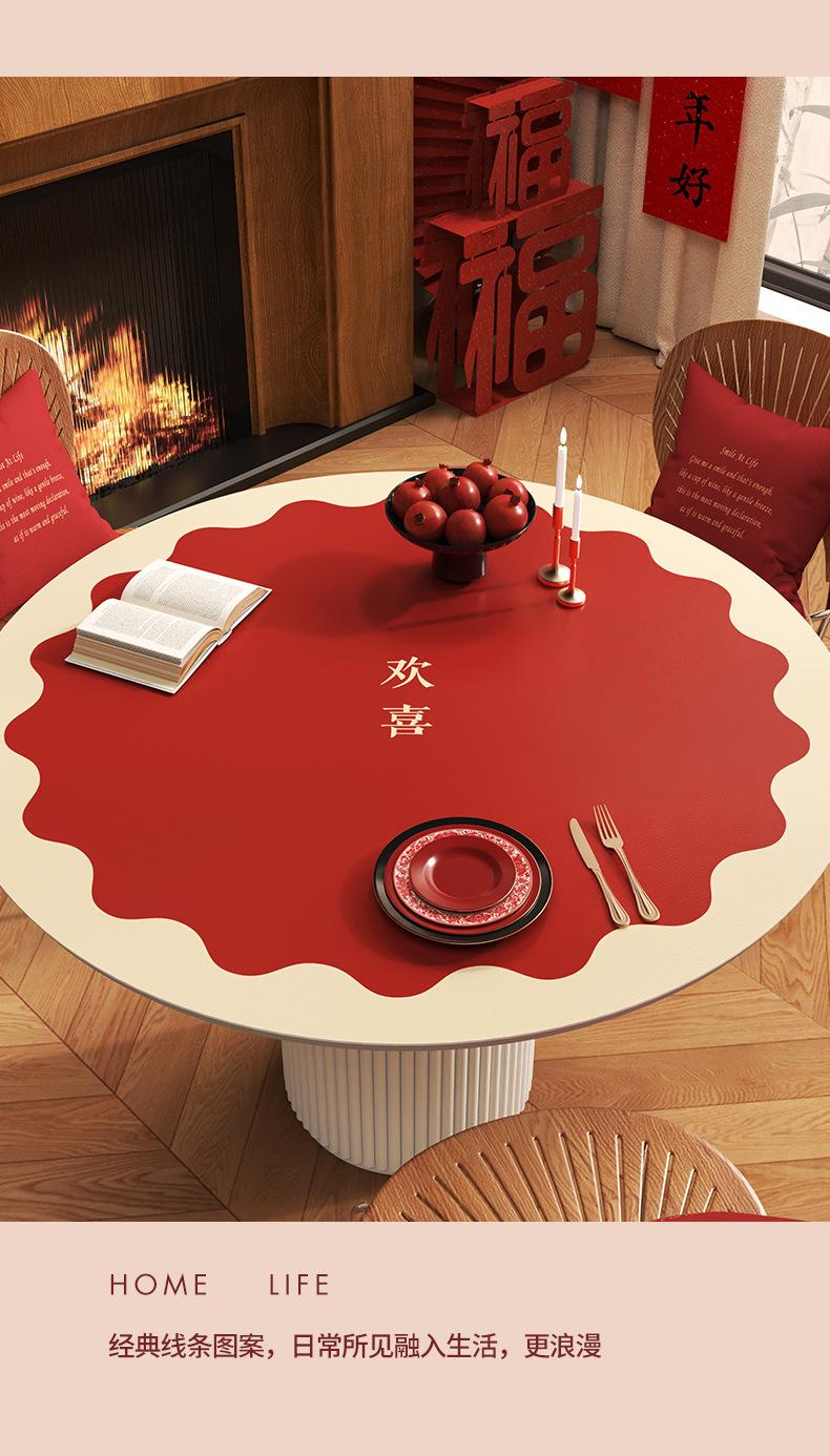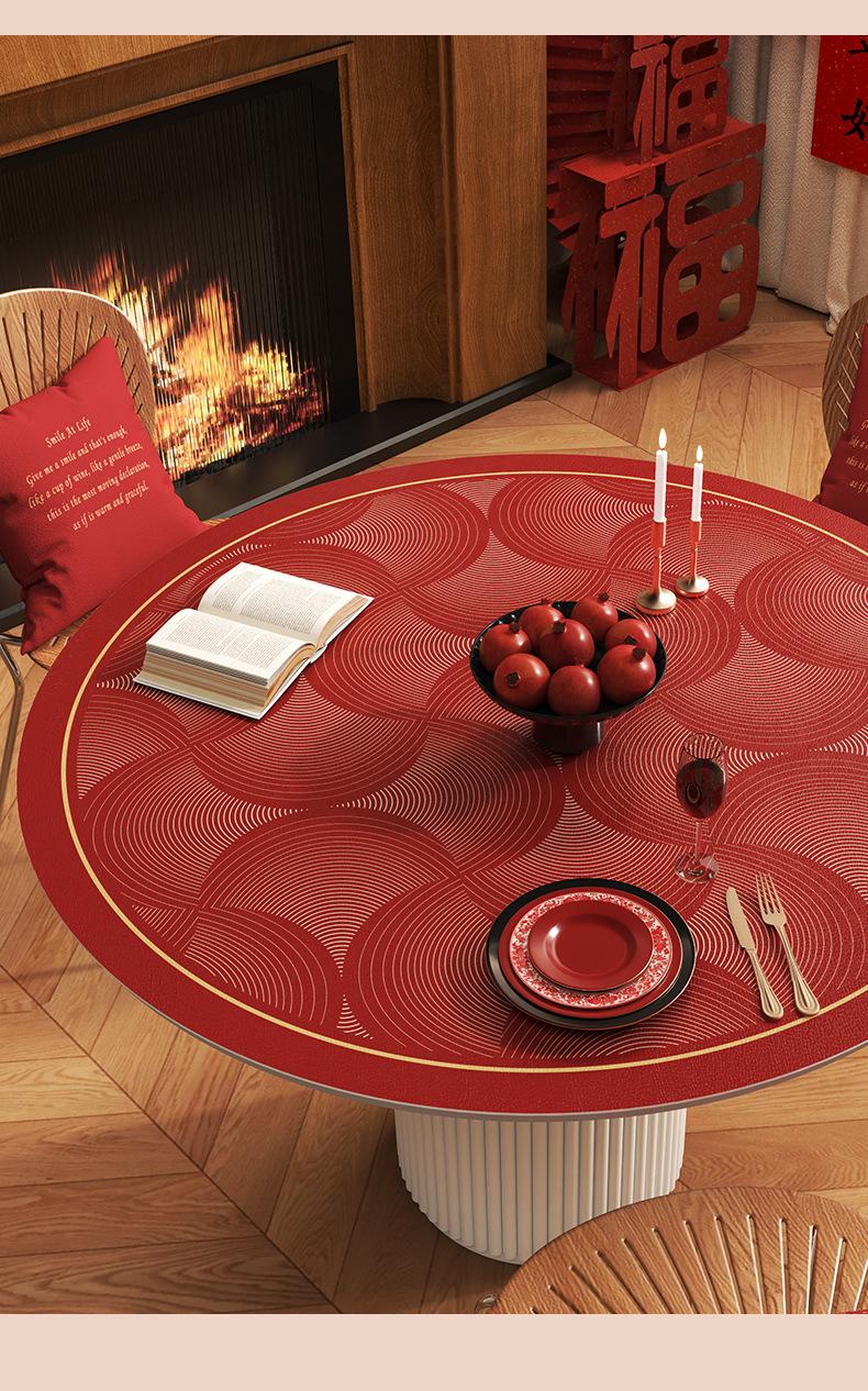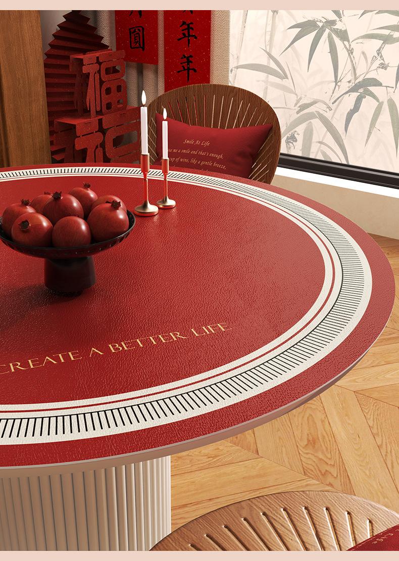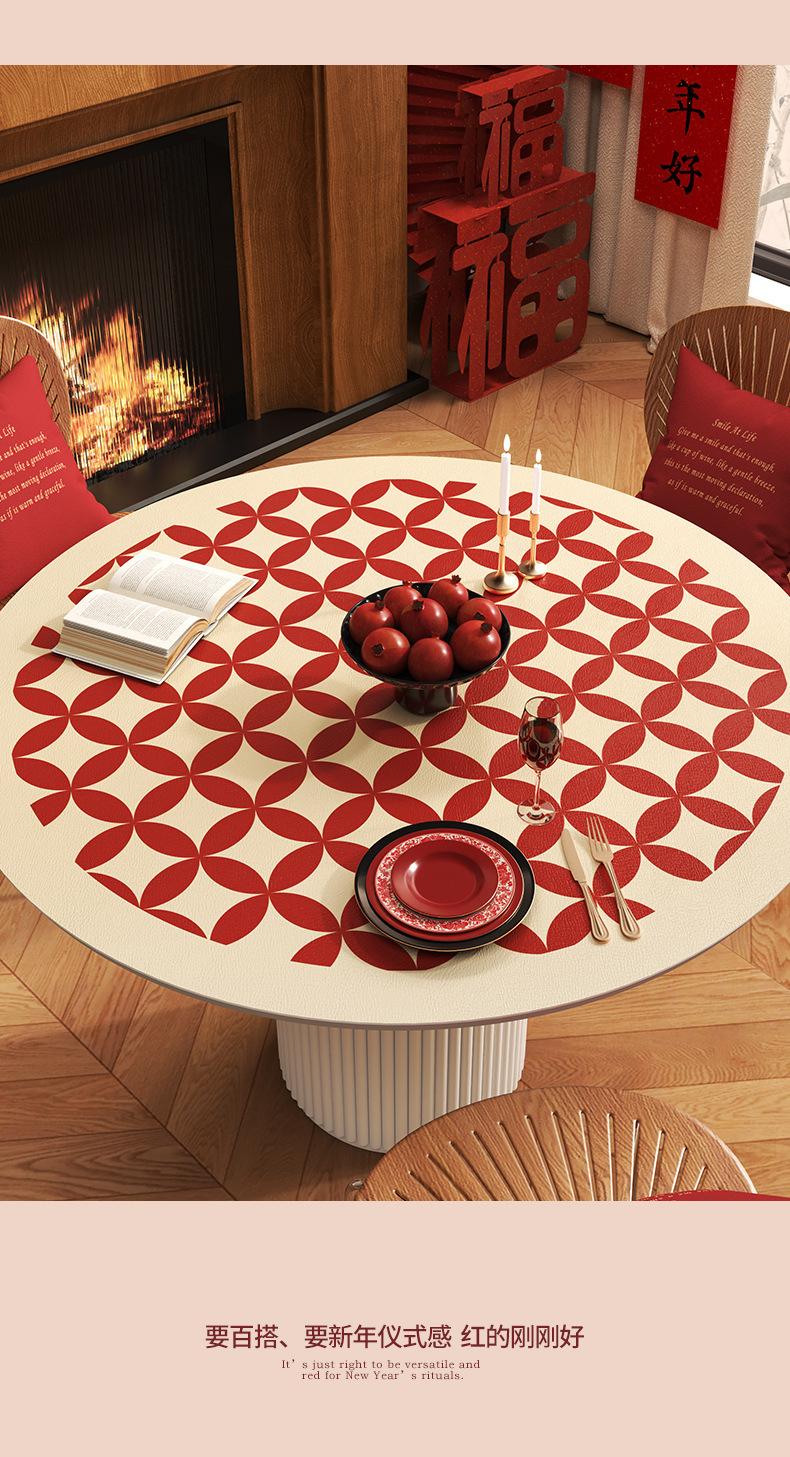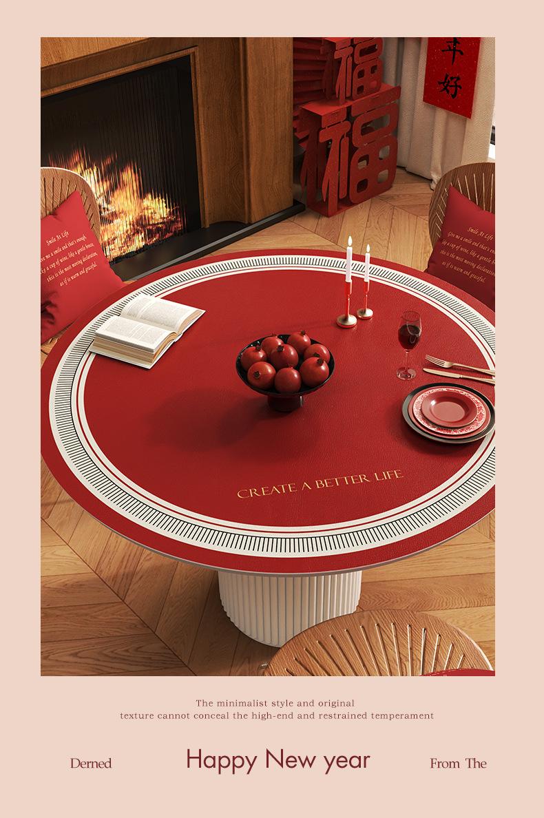 Compre Toalha de Mesa Redonda Festiva Vermelha de Ano Novo para Casamento Impermeável e à Prova de Óleo Tapete de Mesa Descartável Tapete de Mesa de Couro Toalha de Mesa para Mesa de Centro Estilo Chinês no atacado no Joom.pro