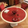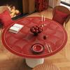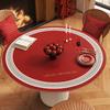 Toalha de Mesa Redonda Festiva Vermelha de Ano Novo para Casamento Impermeável e à Prova de Óleo Tapete de Mesa Descartável Tapete de Mesa de Couro Toalha de Mesa para Mesa de Centro Estilo Chinês