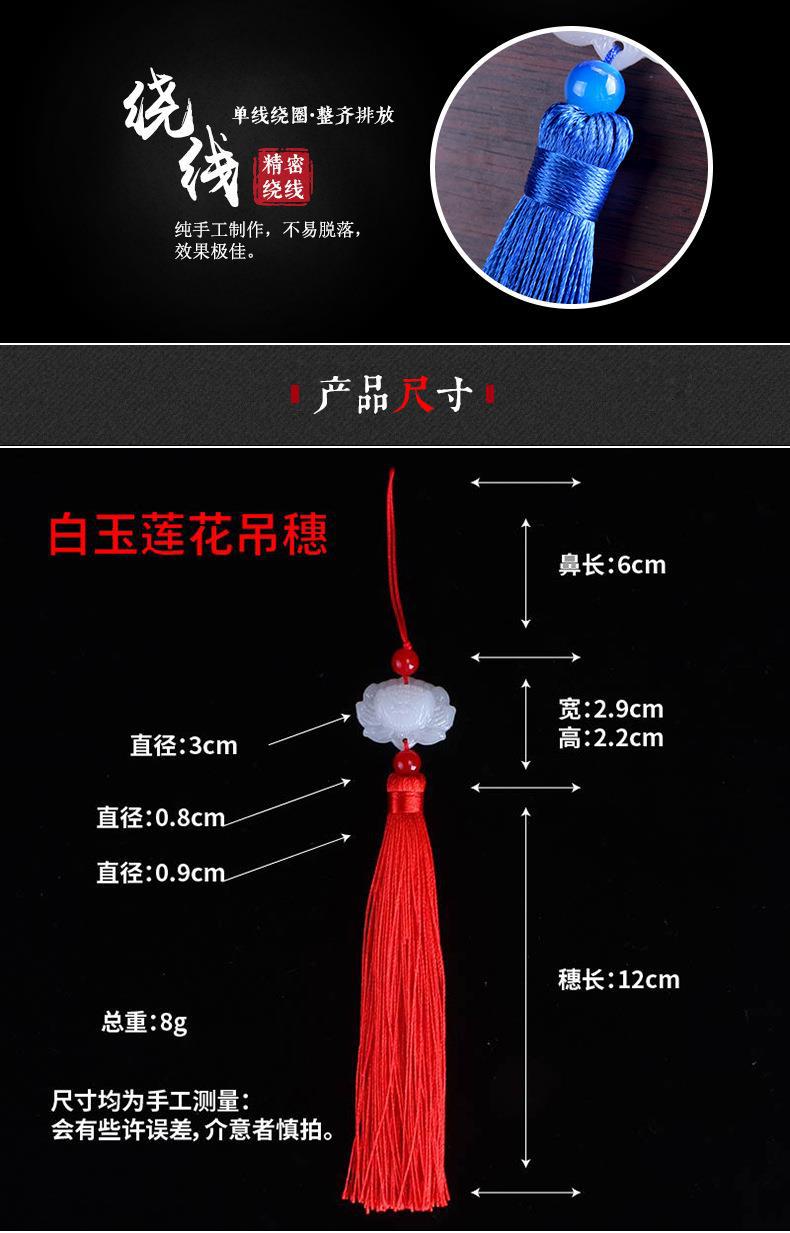 Atacado Três Vidas Três Mundos Dez Milhas Flor de Pêssego Pingente de Leque Pingente de Borla de Lótus de Jade Branco Traje Antigo Borla de Lótus de Jade Branco