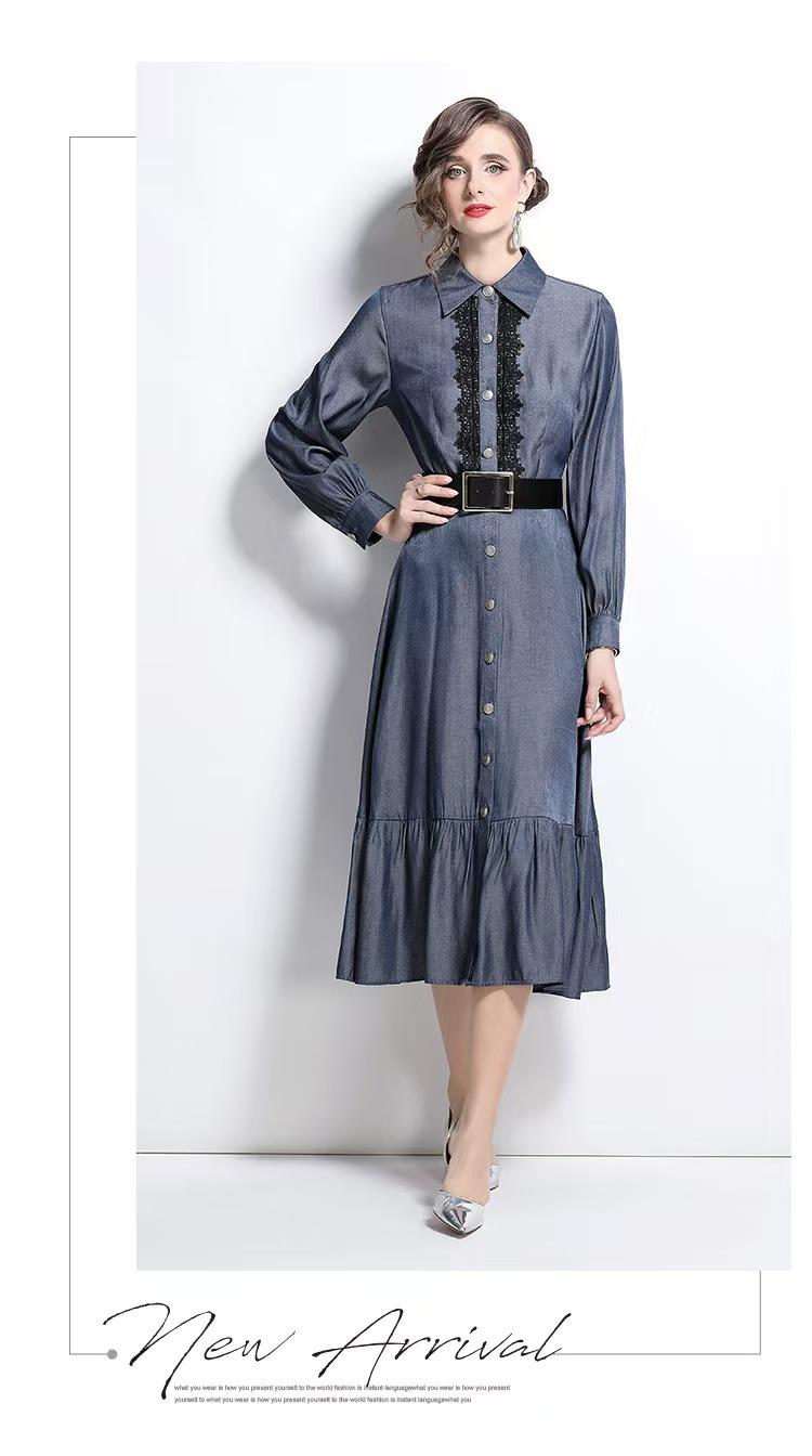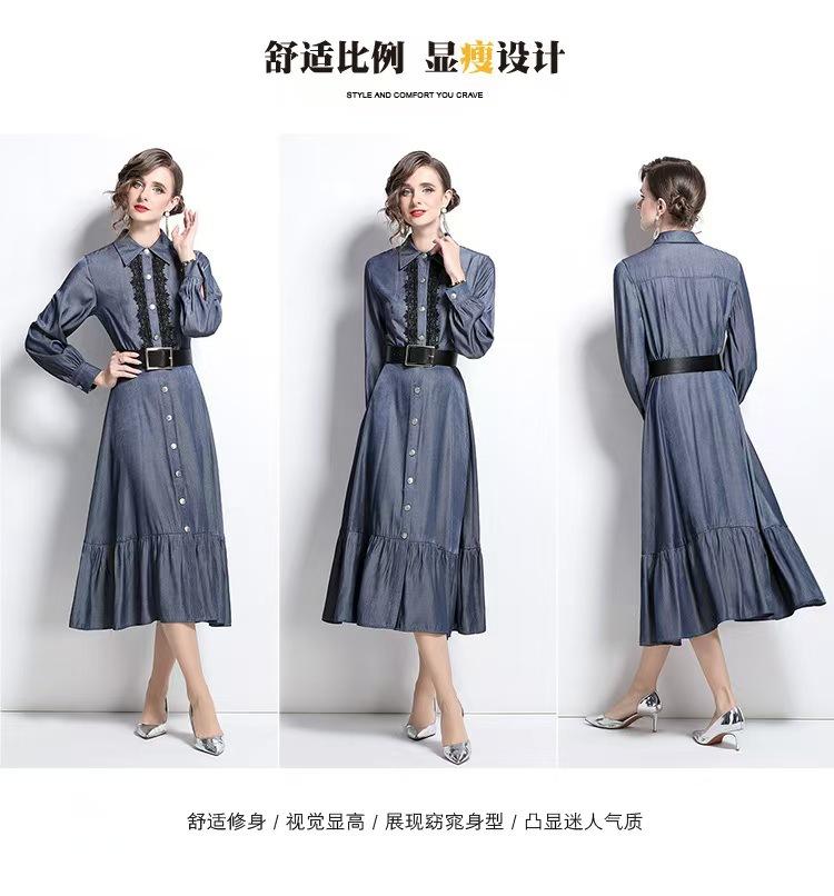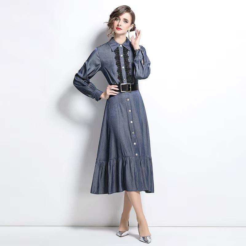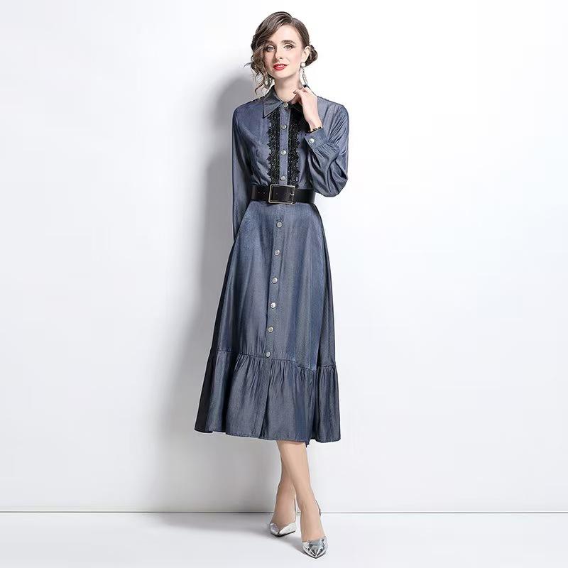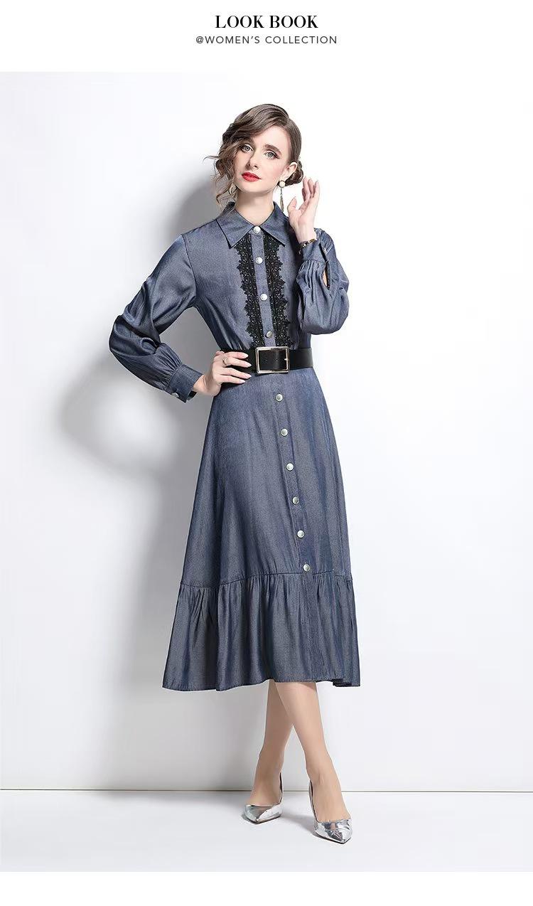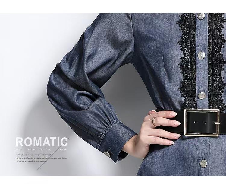Novo Vestido de Alta Qualidade Renda Francesa com Emendas Temperamento Camisa Fashion Saia Longa