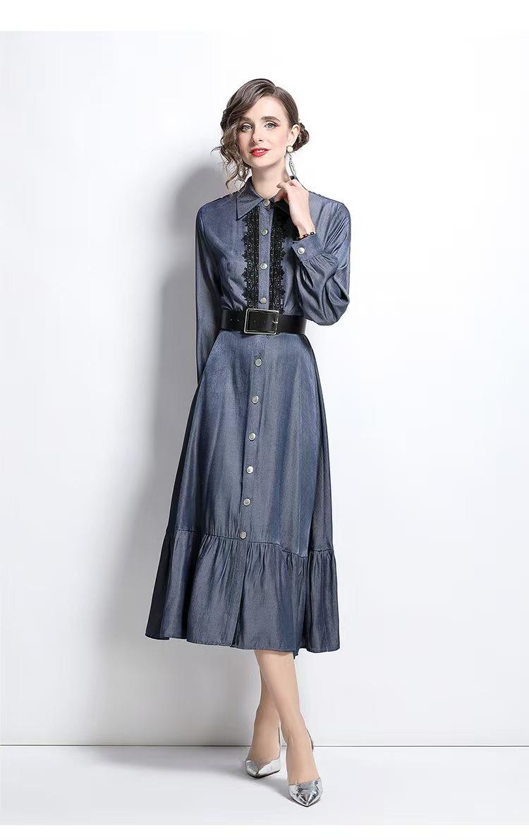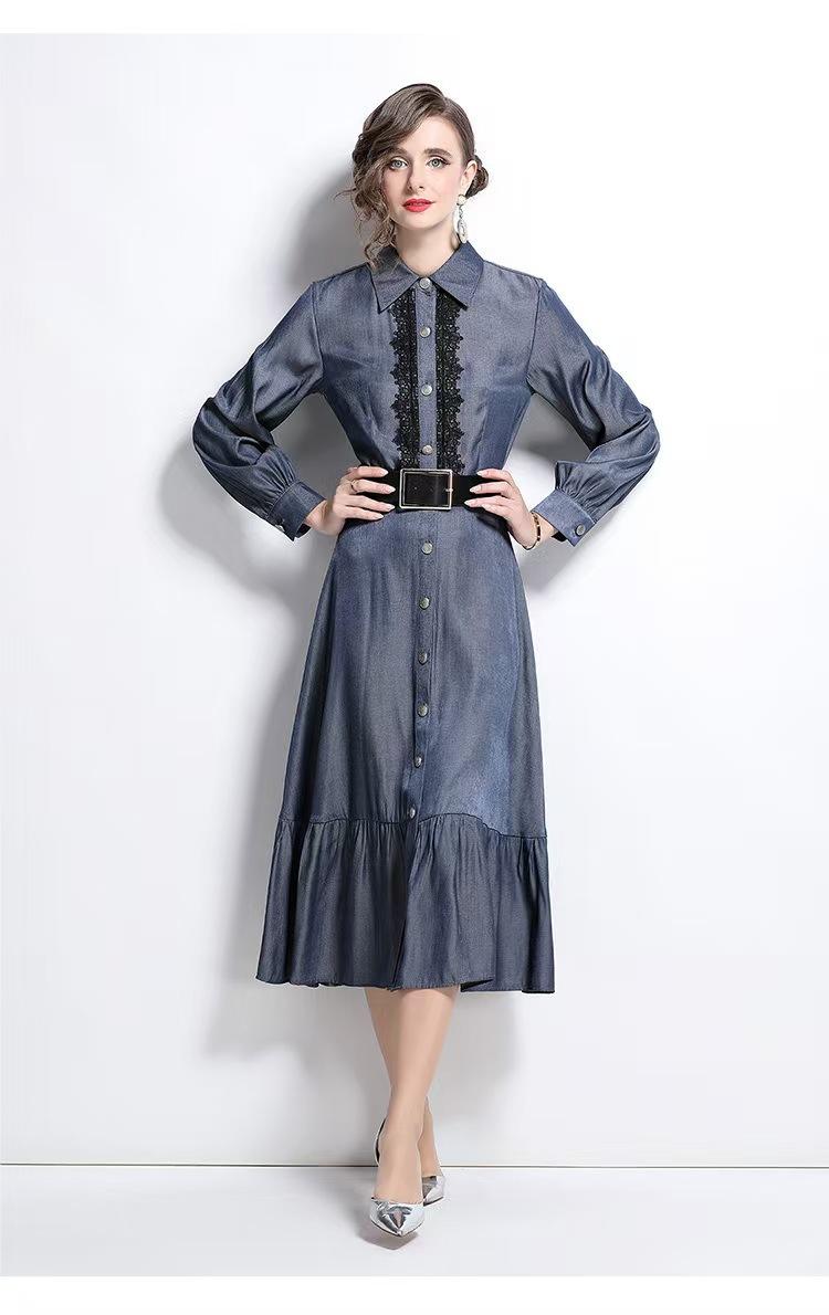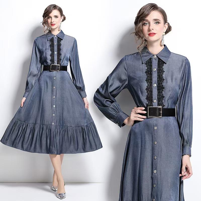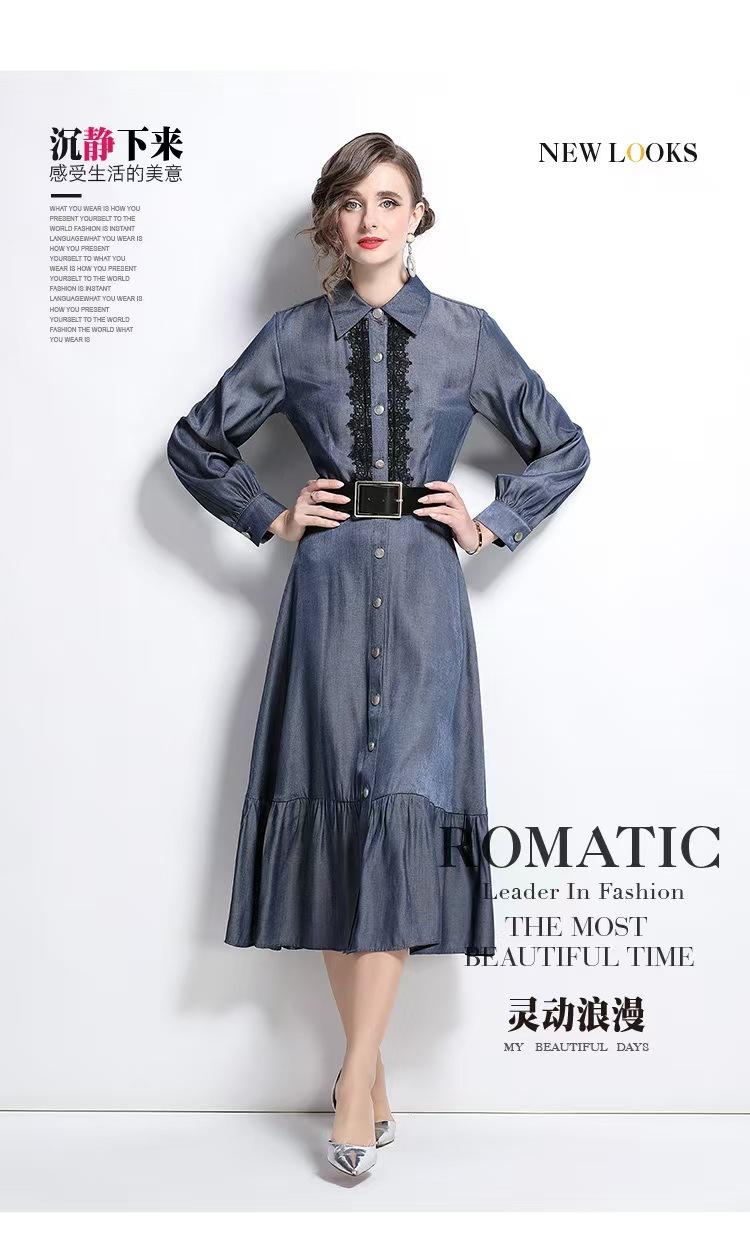 Novo Vestido de Alta Qualidade Renda Francesa com Emendas Temperamento Camisa Fashion Saia Longa
