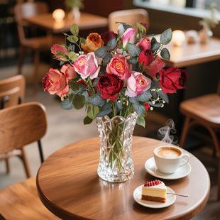 Simulação Flor Rosa Borda Queimada Borda Chamuscada Buquê de Flor Rosa Borda Queimada Flor Seca Artificial Dia dos Namorados Decoração de Casa Atacado de Fábrica |