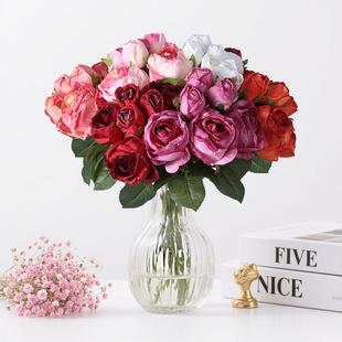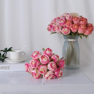 Simulação transfronteiriça pequeno buquê de decoração de rosas de 12 cabeças pequenas rosas casamento noiva de mão simulação pequena rosa |