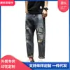 LAZADA Amazon AliExpress fonte ins maré marca jeans rasgados masculinos verão algodão pés calças masculinas