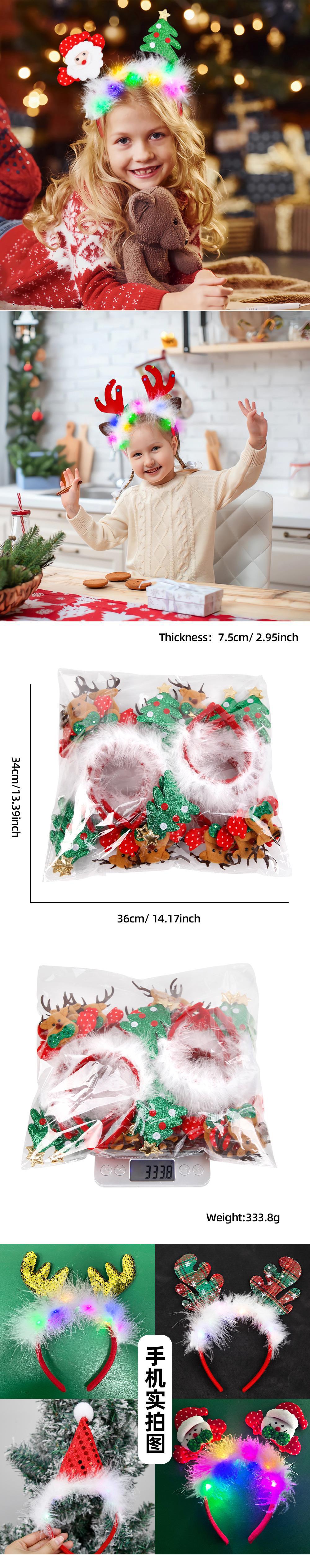 Christmas red antler headband (with lights + fur), Red gold five-pointed star model (with lights + fur), Red a...