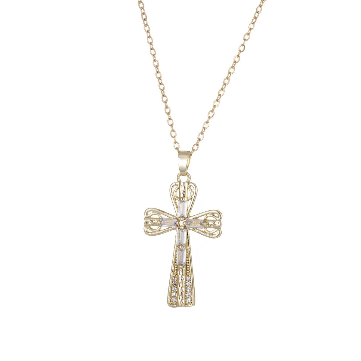 Colar Feminino Europeu e Americano Transfronteiriço Nova Cor Cruz Nicho Moda Simples Retrô Senso de Design Aço Titânio Corrente Clavicular