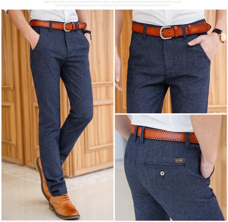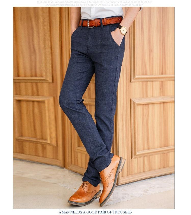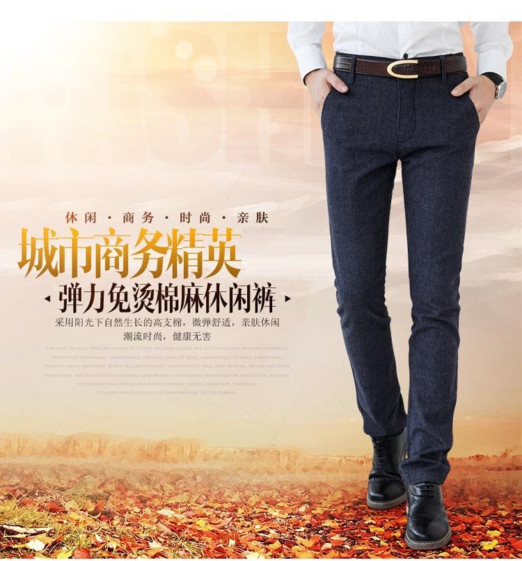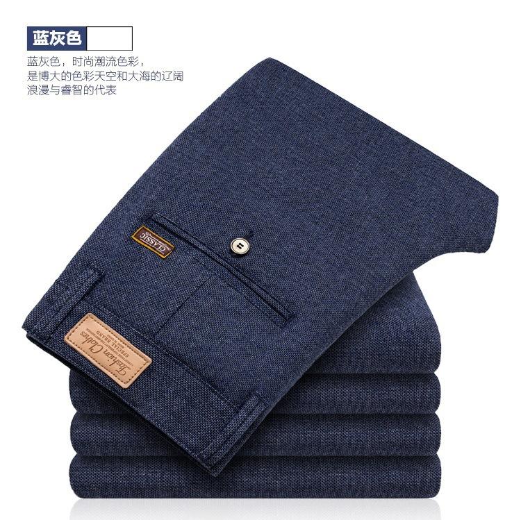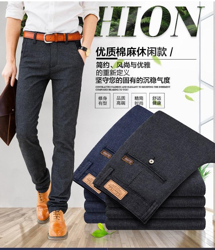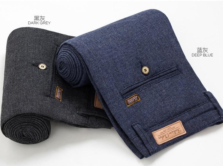 Calças Casuais Masculinas de Primavera e Outono 2025 Novas Calças Masculinas Slim de Perna Reta para Negócios Calças Longas Soltas de Algodão e Linho Escovado