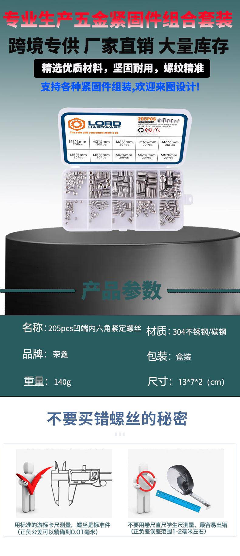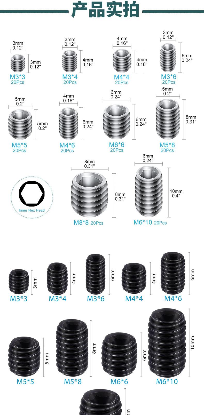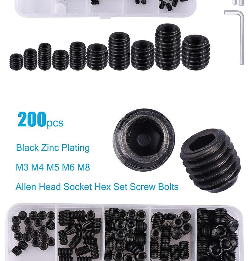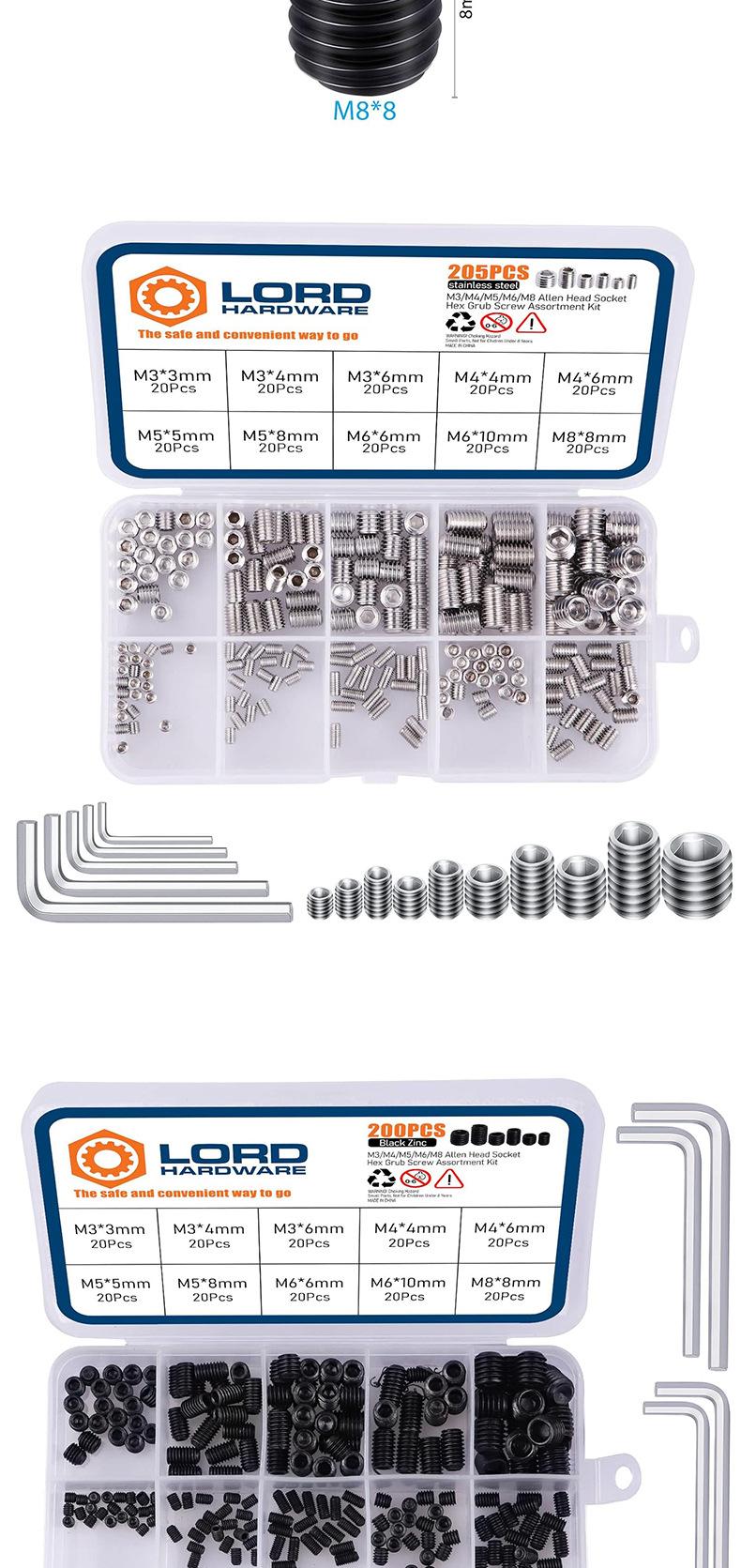 Caixa 200 Peças Aço Inoxidável Cabeça Chata Soquete Sextavado Parafusos de Máquina Conjunto Sortido M3 M4 M5 M6 M8