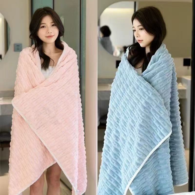 [Cor Aleatória] Toalha de Banho de Veludo de Bambu para Mulheres Adultos Toalha de Veludo Coral Espessa e Absorvente de Água