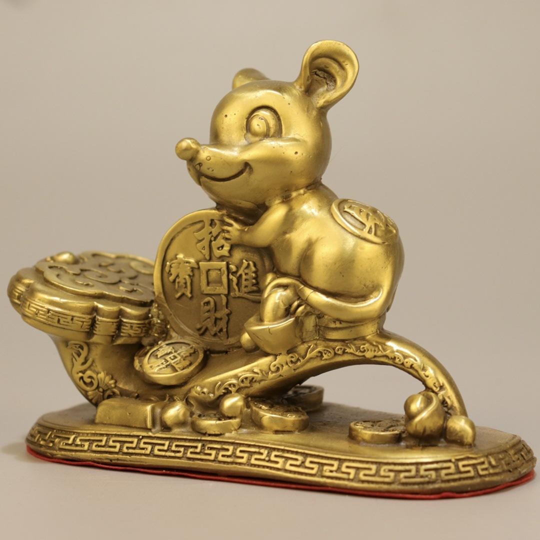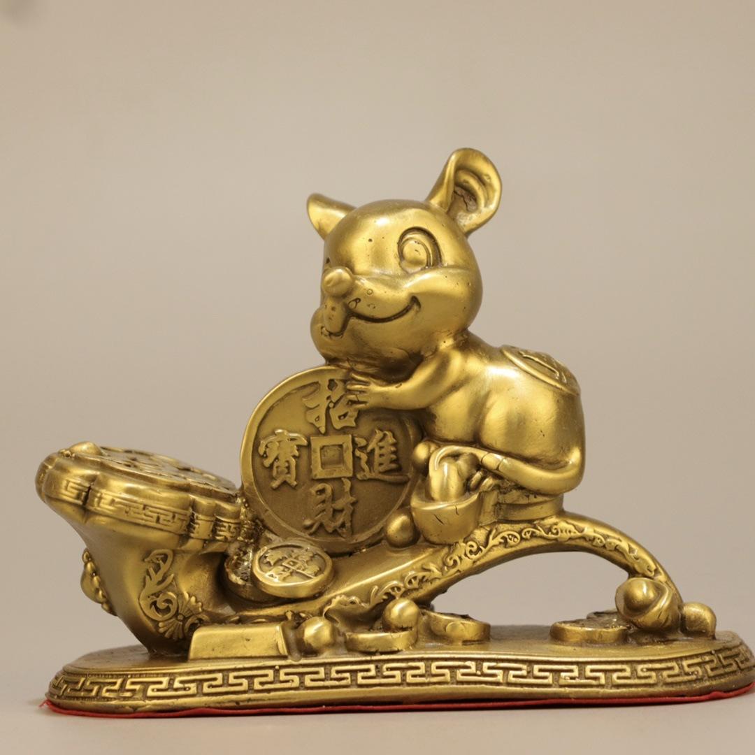 2023 enfeites de rato do Zodíaco de latão cobre seguro Ruyi rato decoração para casa presente criativo artesanato atacado