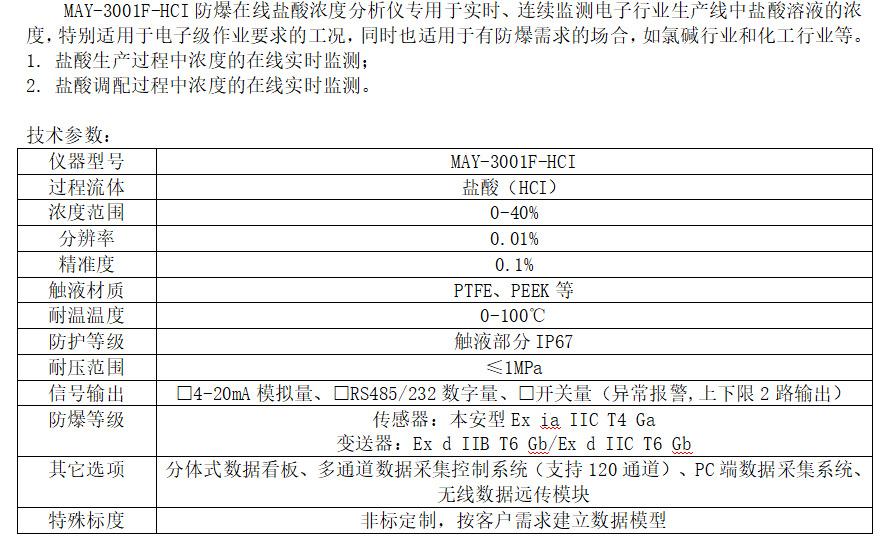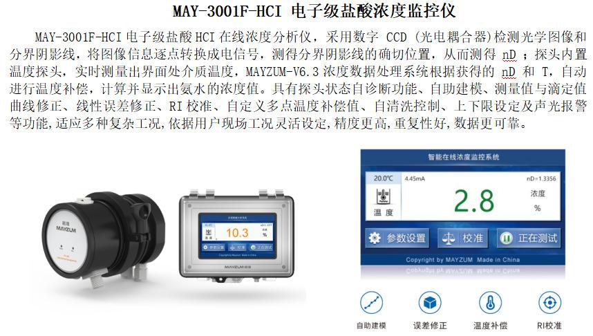 Sistema de Monitoramento em Tempo Real da Concentração de Ácido Clorídrico Grau Eletrônico Mayzum Semicondutor May-3001F-Hci