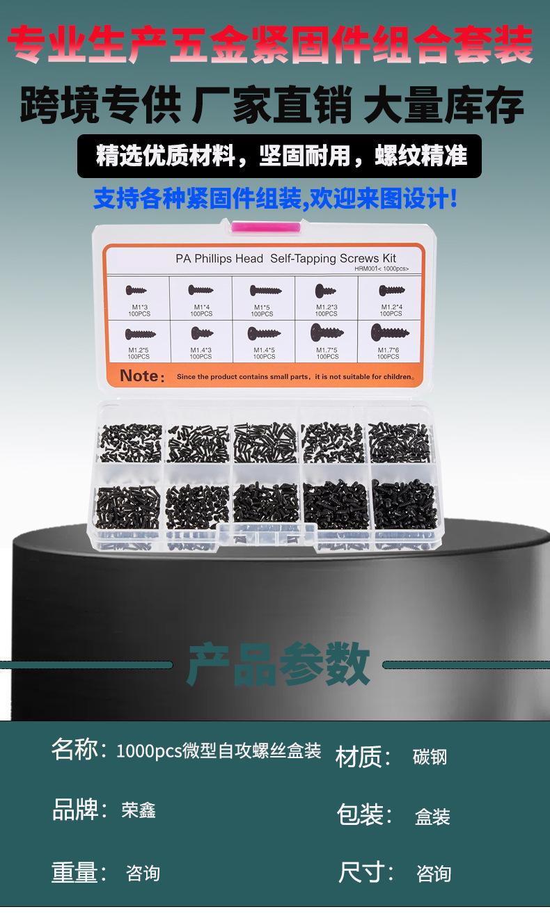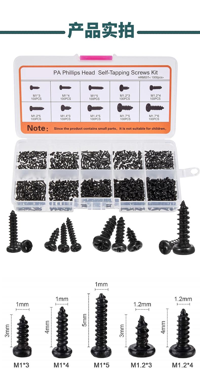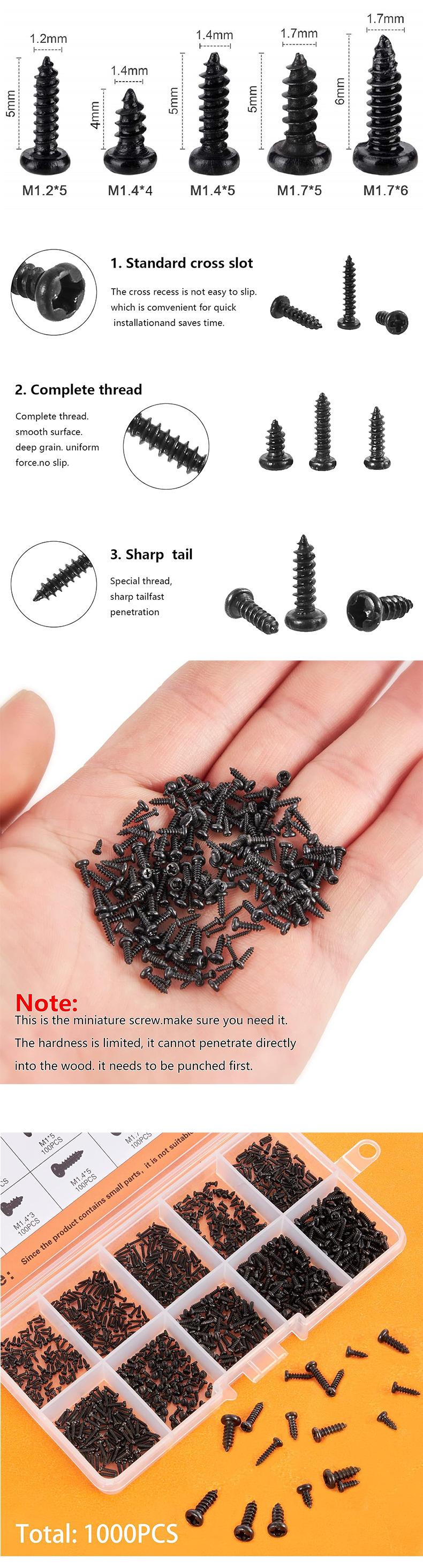 Caixa com 1000 Parafusos Autoatarraxantes Cruz de Cabeça Redonda Pa Para Óculos Relógio Reparo Micro Digital Kit de Parafusos Pequenos
