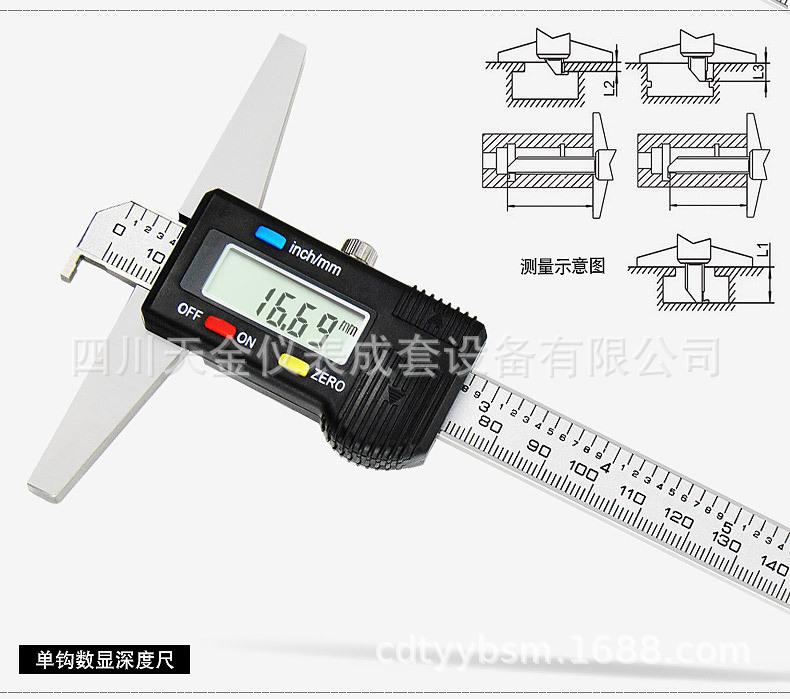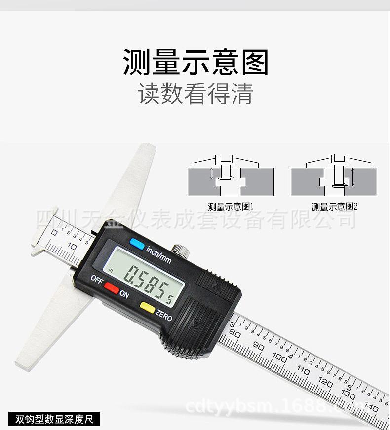 Paquímetro de profundidade com display digital precisão 0,01 paquímetro vernier com medidor instrumento digital de medição de profundidade com gancho paquímetro de profundidade