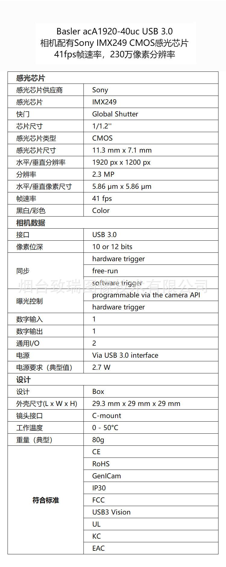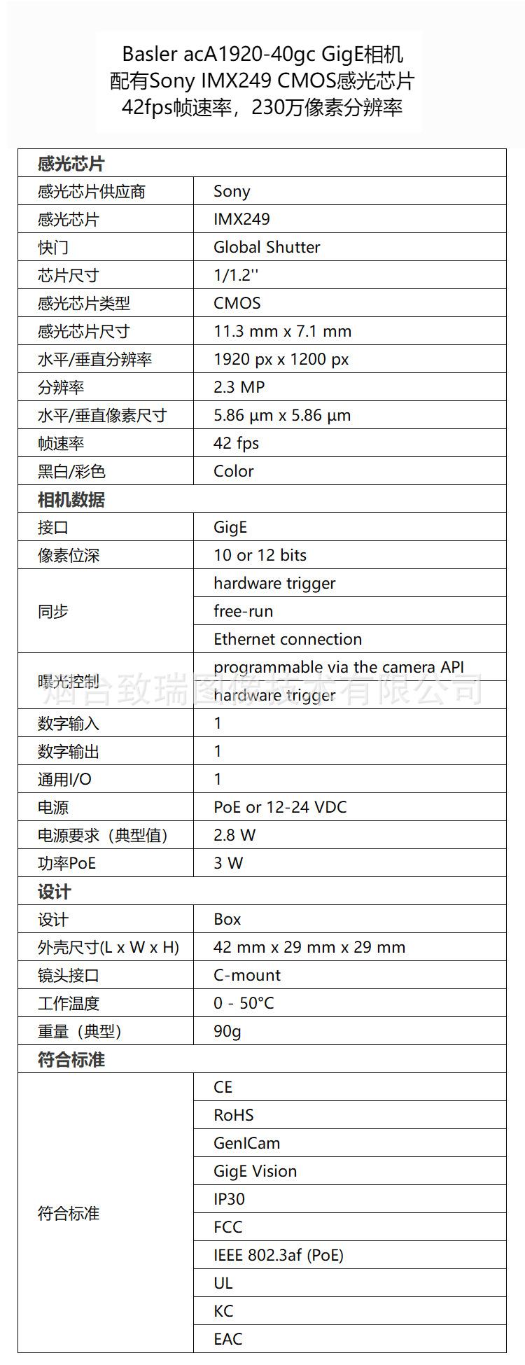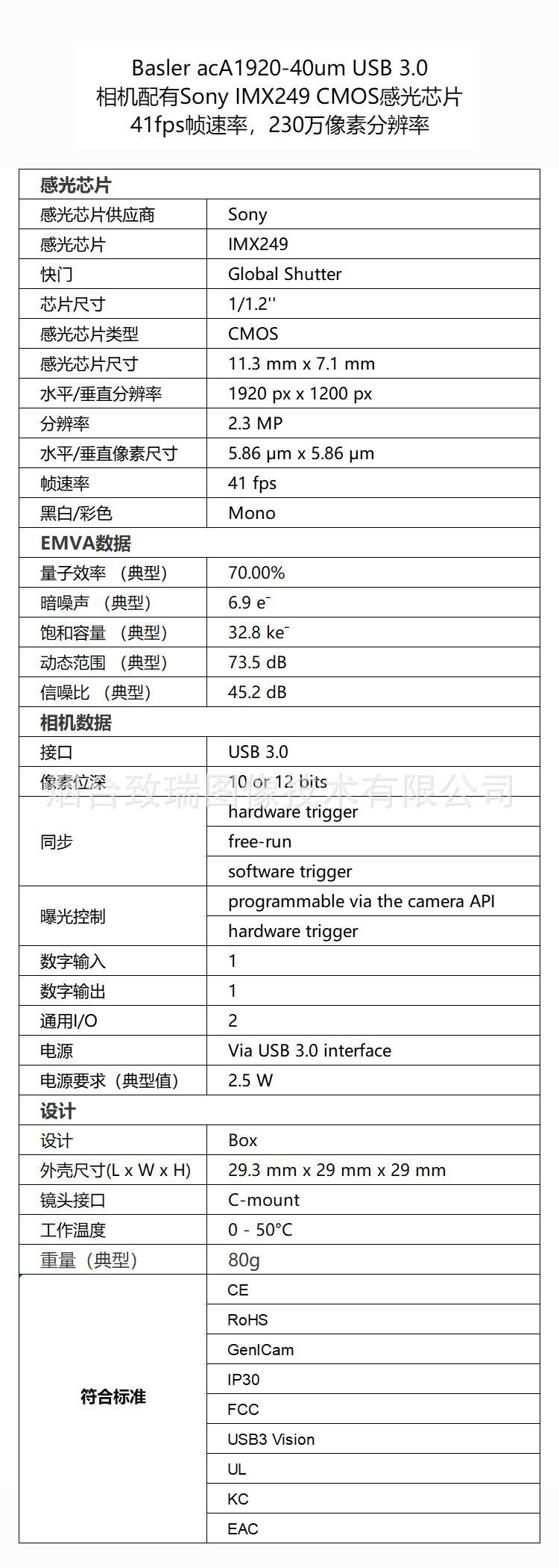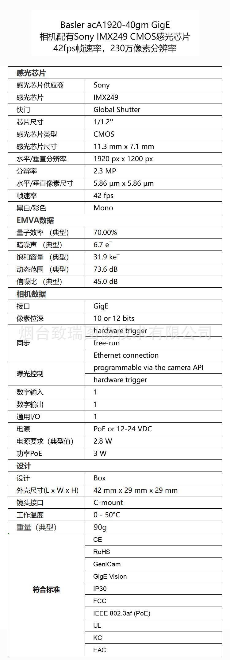 Câmera Industrial de Alta Precisão Genuína Basler Nova Câmera de Varredura de Área Basler A1920-40Gm