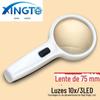 Luzes de anel de mão com 11 LEDs para leitura, identificação, manutenção para idosos, espelho principal de 5 vezes, espelho auxiliar de 20 vezes, lupa HD