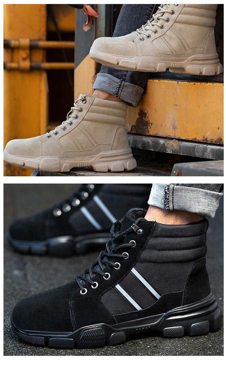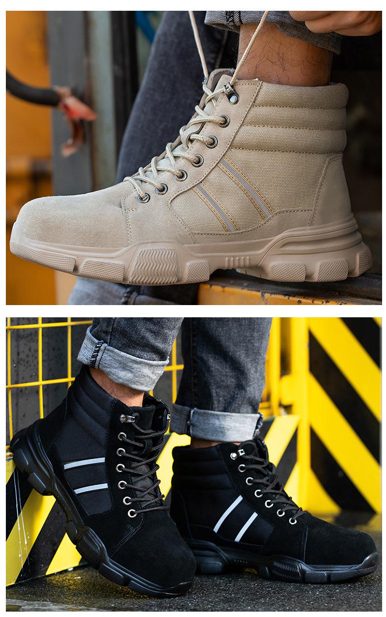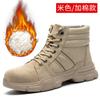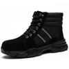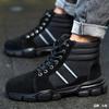 Sapatos de Proteção do Trabalho de Cano Alto Anti-Esmagamento e Anti-Perfuração de Tecido Oxford Outono e Inverno Espessados Sapatos de Segurança Quentes Biqueira de Aço Plus Veludo Sapatos de Trabalho