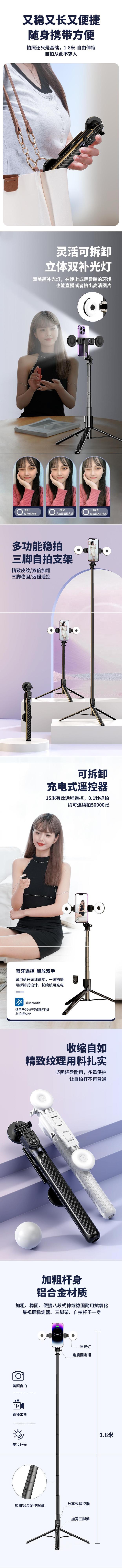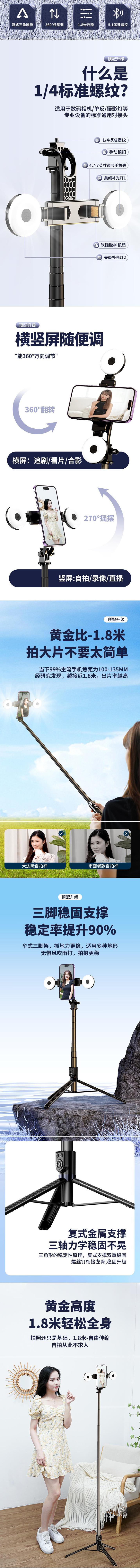 Venda Direta da Fábrica Novo Suporte de Chão Estendido Reforçado de 1,8m em Liga de Alumínio para Transmissão ao Vivo, Bastão de Selfie Bluetooth para Celular
