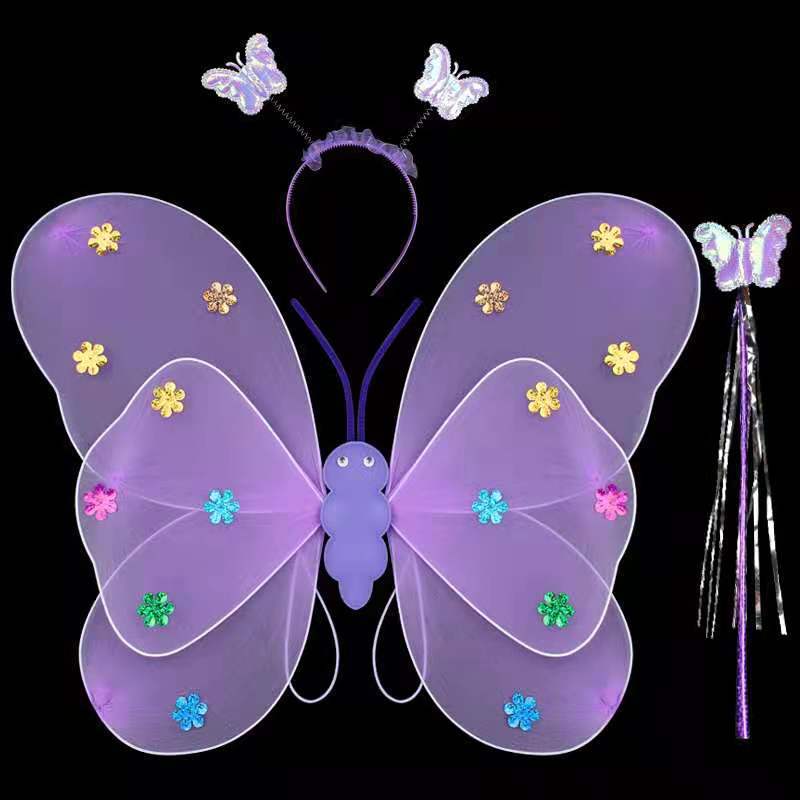 Asas de borboleta luminosas de LED de camada dupla borboleta de camada única conjunto de três peças adereços de fantasia de apresentação infantil Asas de anjo