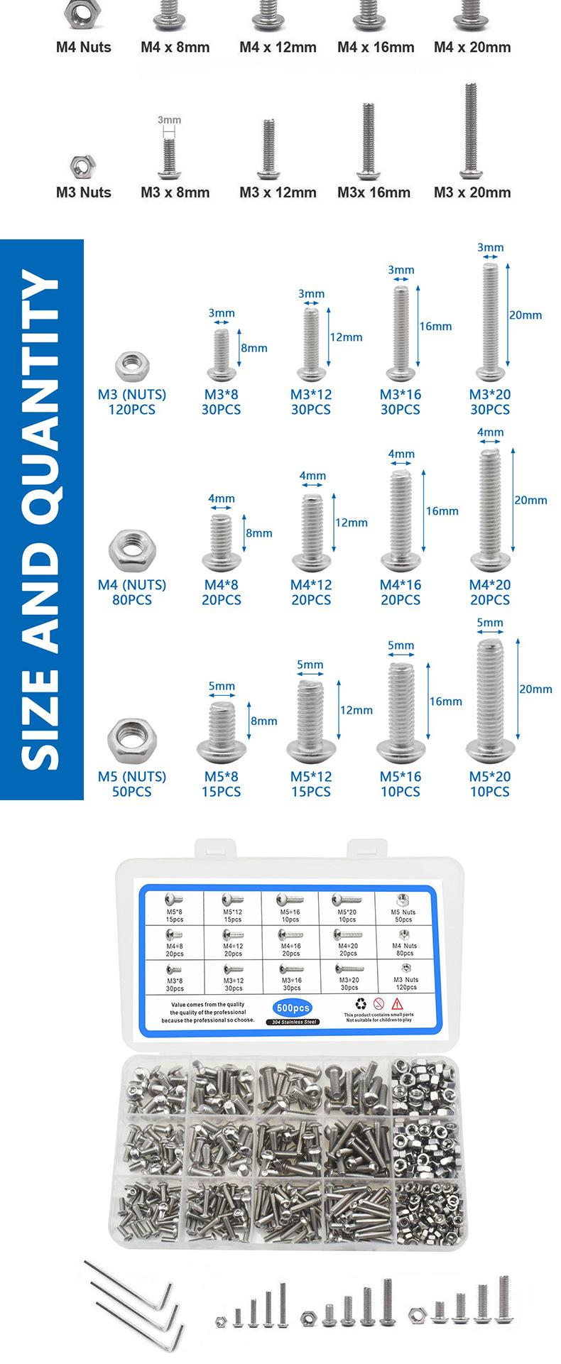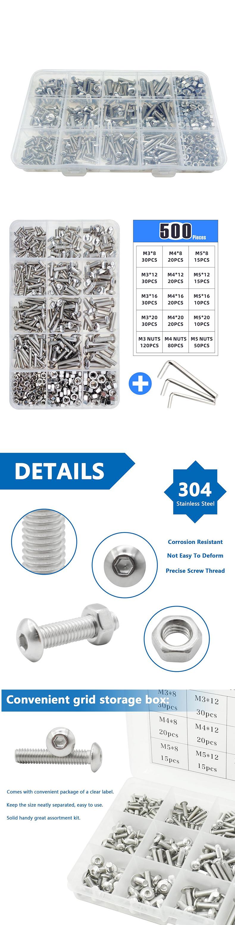 Caixa com 500 Peças M3M4M5 Aço Inoxidável 304 Cabeça Panela Parafuso Sextavado de Soquete e Porcas com Kit de Combinação de Ferramentas