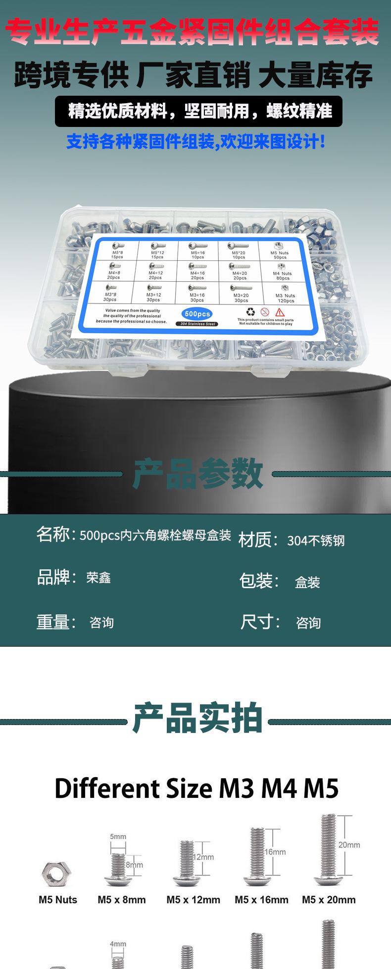 500pcs stainless steel hexagon socket screws and nuts boxed