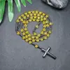 Colar com Pingente de Cruz de Pedra Natural da Amazônia Ônix Verde Listrado Cruz Vesícula Biliar de Ferro Rosário para Homens Colar
