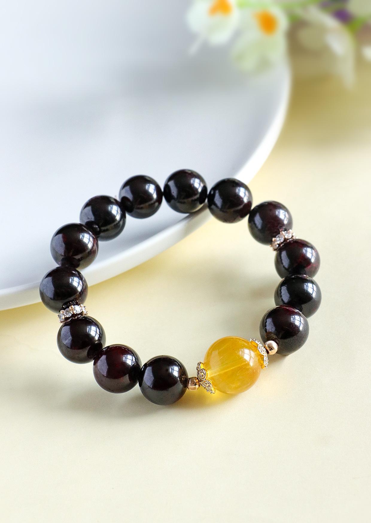 Pulseira de Contas de Granada Natural de 14mm Feminina Nicho de Alta Qualidade Ametista Natural Cristal Amarelo Pulseira Joia