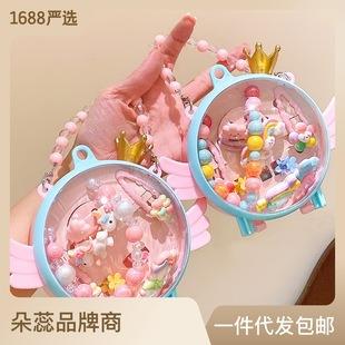 Conjunto de Colar Infantil Frozen Elsa Pulseira de Pérolas Clipe de Orelha Presente Dia das Crianças Menina Bebê Estilo Quente