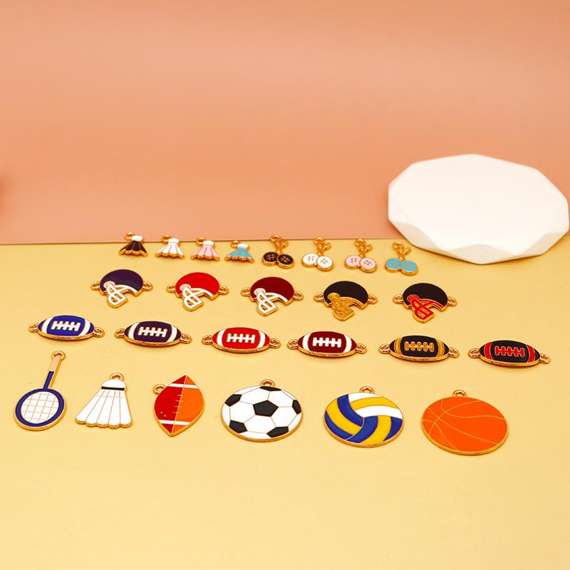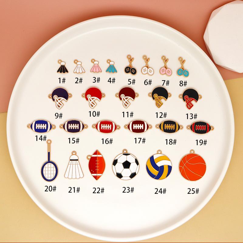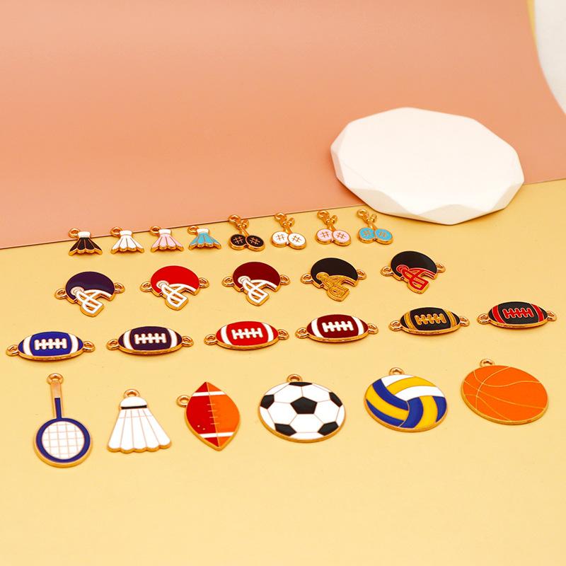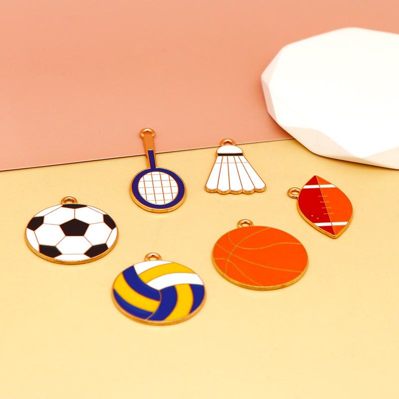 Bola de desenho animado acessórios de joalheria DIY futebol basquete badminton liga gota de óleo chaveiro decoração de bolsa pingente