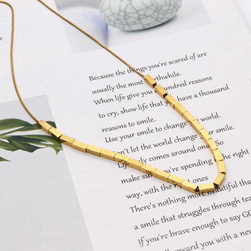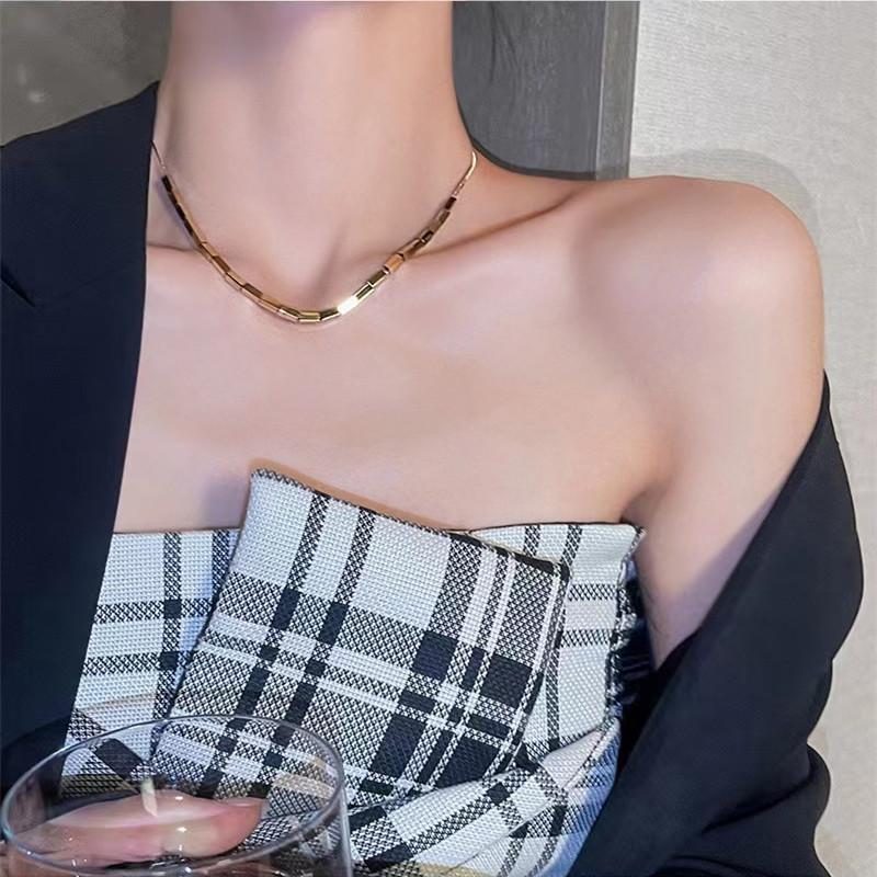 Colar Quadrado Pequeno com Contas Corrente Clavicular da Moda Design de Nicho ins Quadrado Osso de Cobra Aço Titânio Banhado a Ouro Colar Geométrico