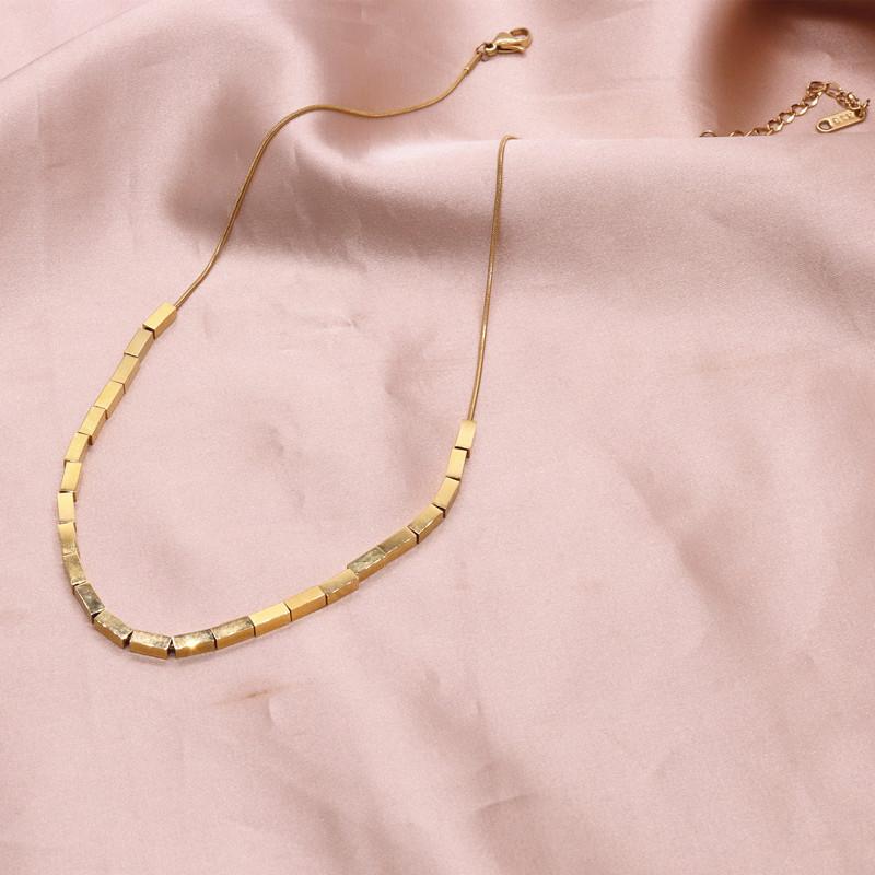 Compre Colar Quadrado Pequeno com Contas Corrente Clavicular da Moda Design de Nicho ins Quadrado Osso de Cobra Aço Titânio Banhado a Ouro Colar Geométrico no atacado no Joom.pro