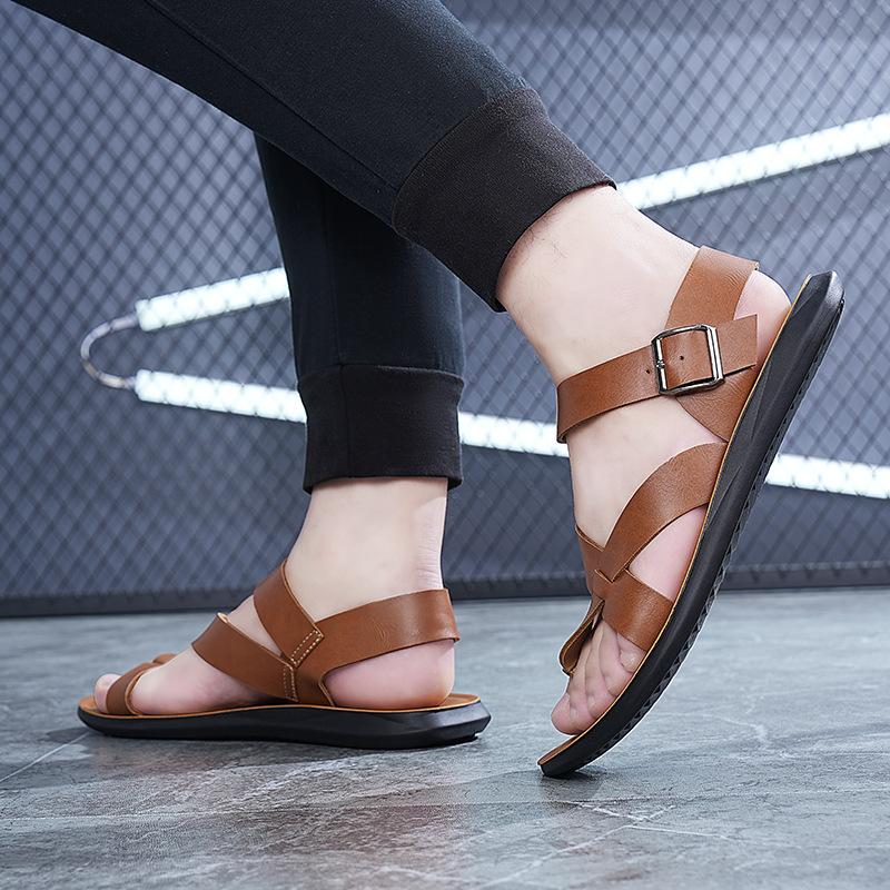 Sandálias Masculinas 2025 Nova Praia Verão Uso Externo Shein Antiderrapante Resistente ao Desgaste Sandálias de Dupla Finalidade Tamanho Grande